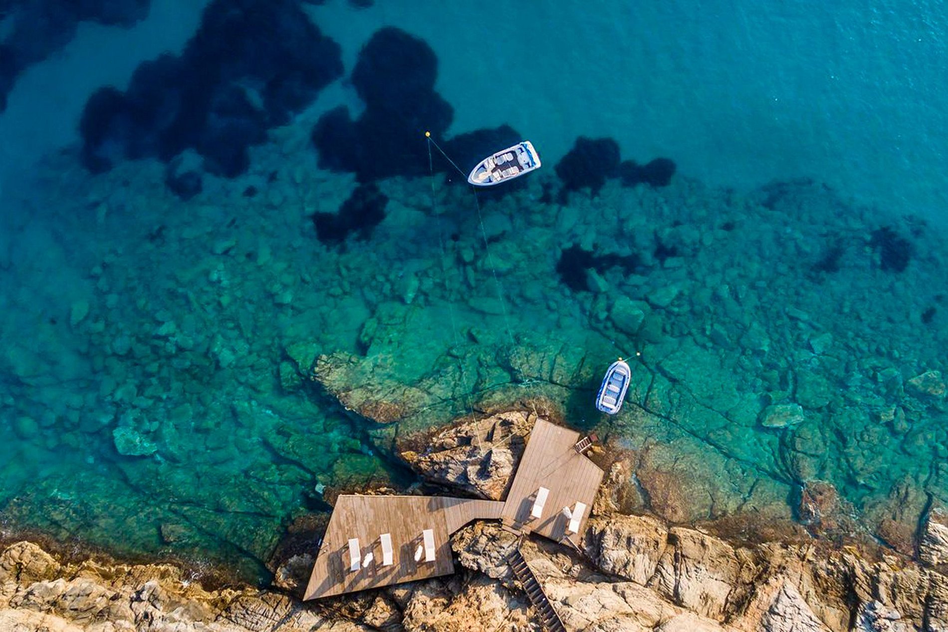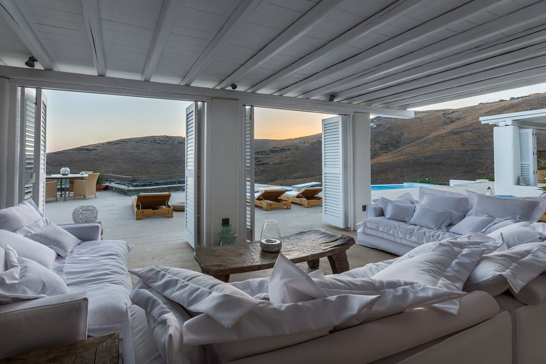 La combinación del océano y los colores de la villa complementa la belleza ya existente del paisaje. Las áreas exteriores de descanso y los rincones ocultos se han diseñado individualmente para maximizar la tranquilidad al aire libre. Desde la gran mesa de comedor de mármol hasta las numerosas asoleadoras con fascinantes vistas al mar.