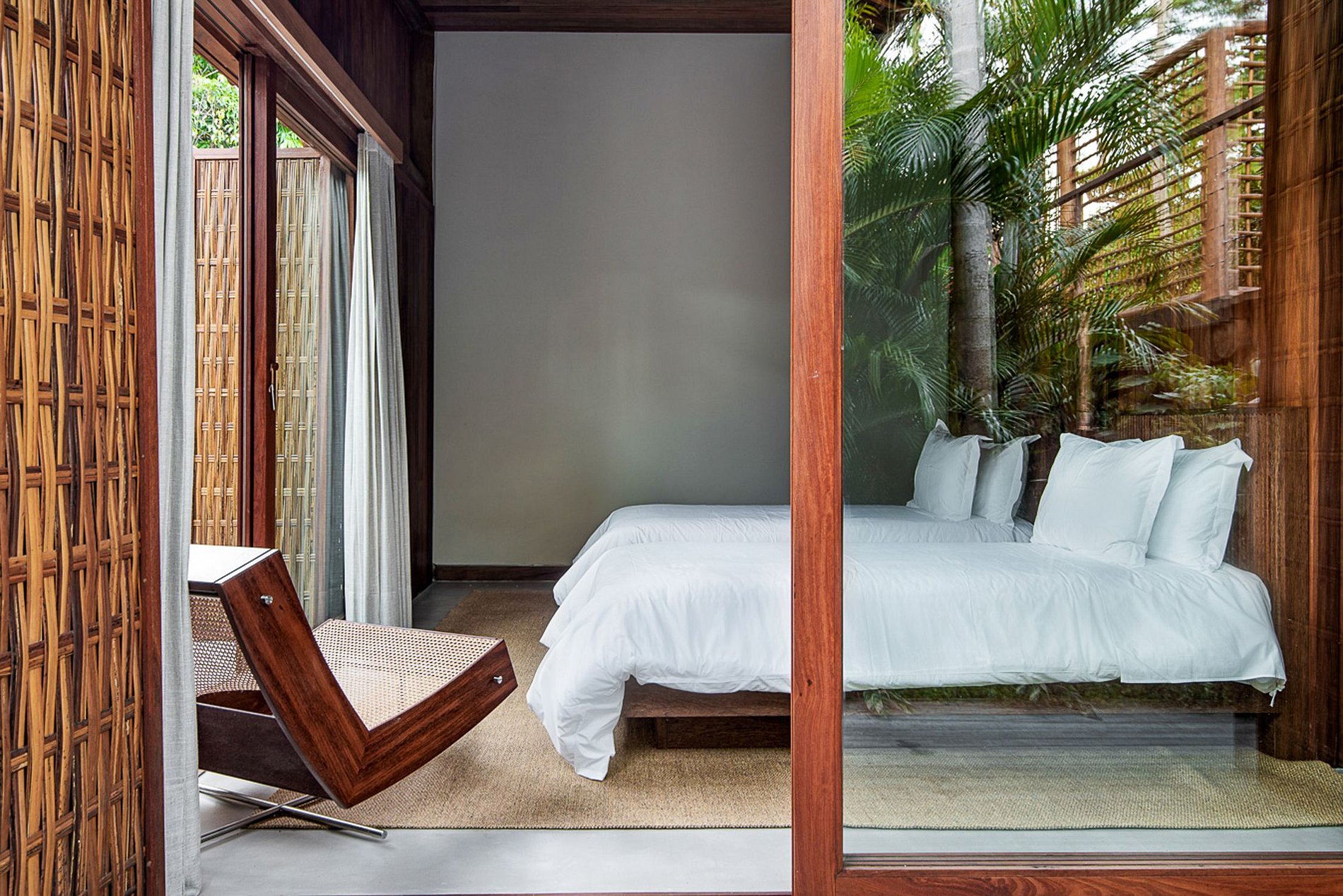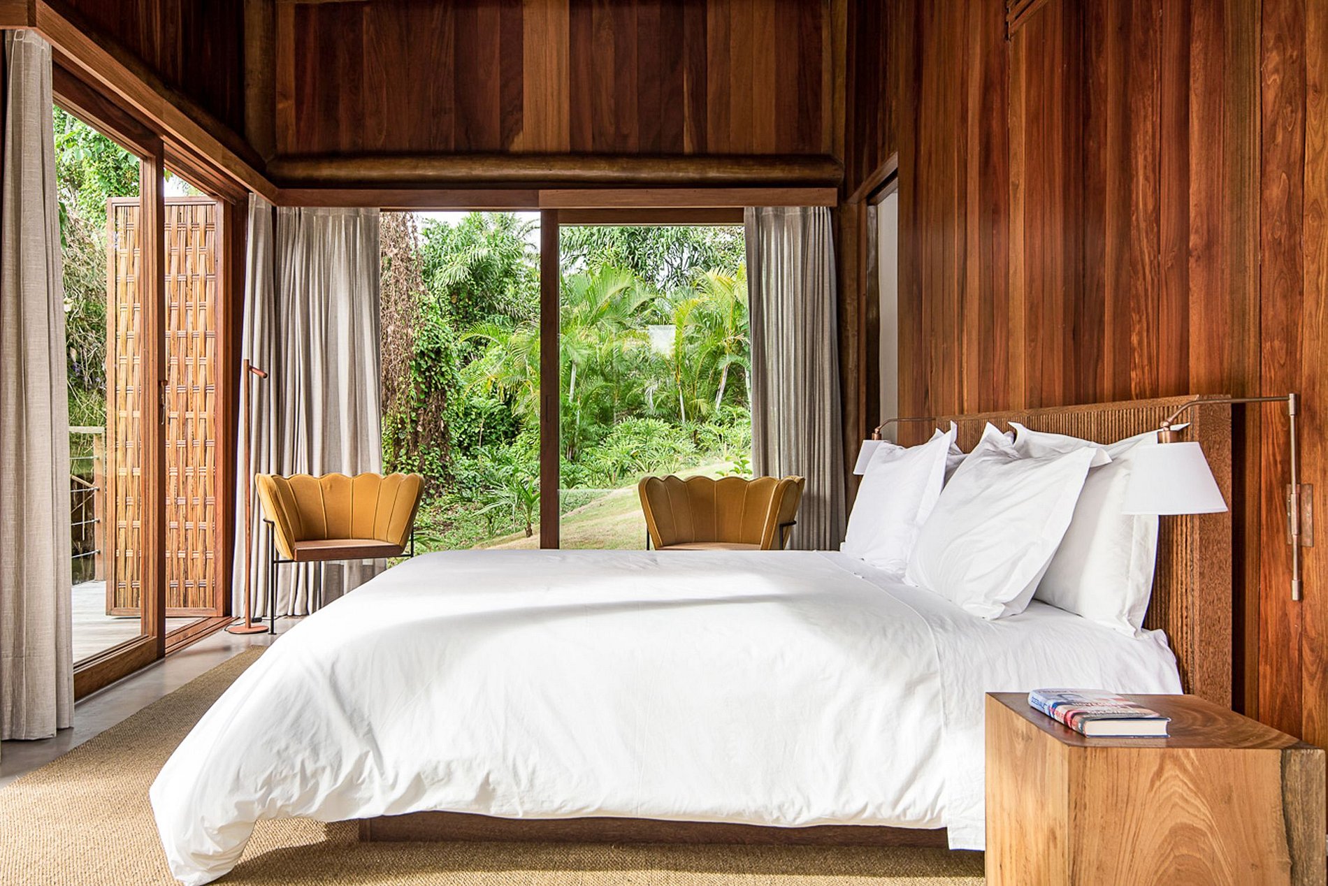 En la planta baja del bungalow central se encuentran la sala de estar, la cocina integrada, el balcón y la piscina infinita. En el entrepiso, una suite principal con vista panorámica a la Mata Atlántica y vista parcial al mar se combina con un dormitorio ideal para niños. Las demás suites se distribuyen entre los demás bungalows interconectados por decks.
