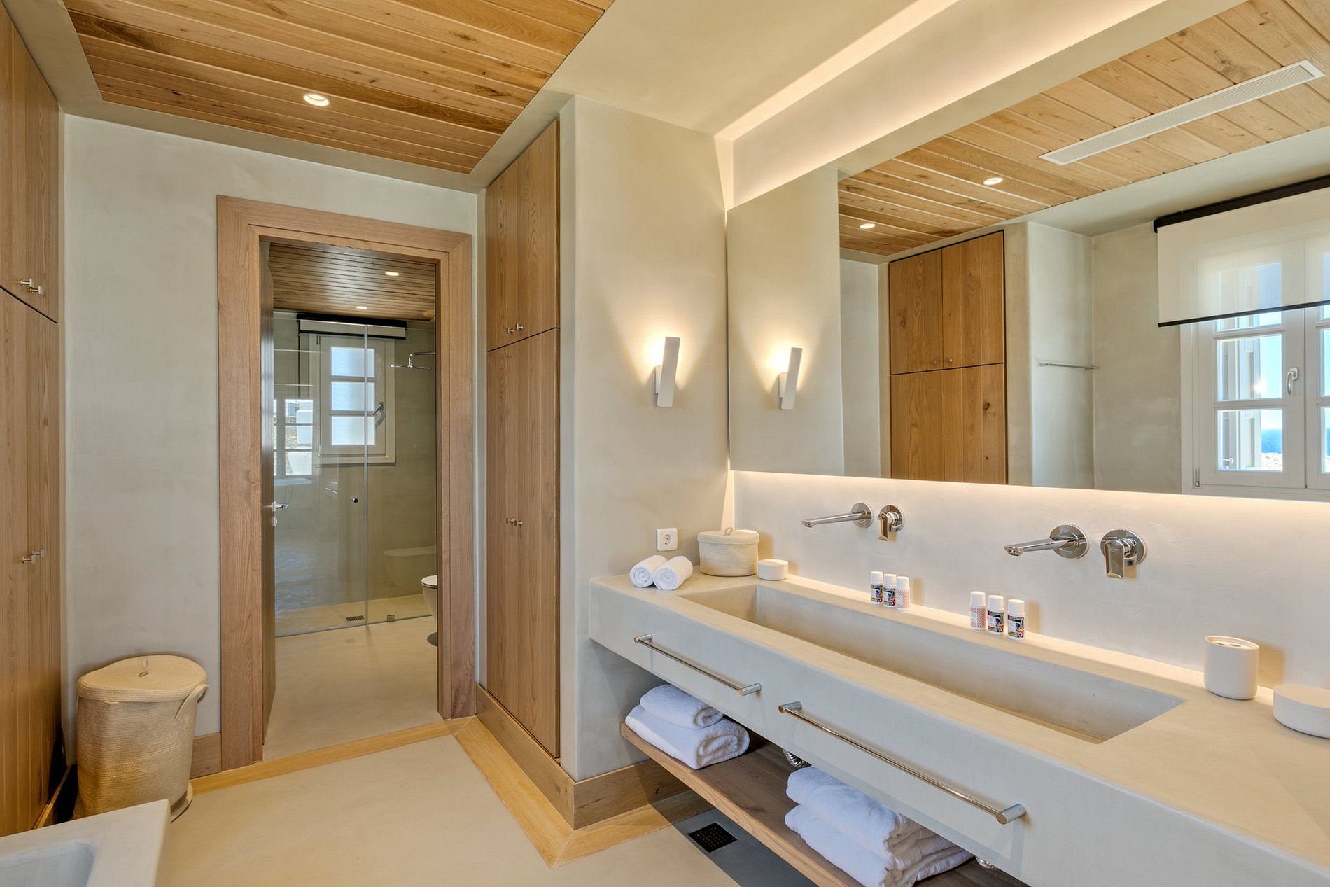 El diseño de la villa está inspirado en las espectaculares casas de piedra encaladas de blanco, y ofrecen lo mejor del idílico estilo de vida isleño. Ofrece amplias zonas de estar rodeadas de olivos y otras plantas mediterráneas y se extiende sobre una parcela de 4.000m2 con vistas al mar Egeo. El moderno interior de 350m2 está hermosamente decorado, mientras que la vasta área al aire libre cuenta con una enorme piscina estilo resort "Beach Entry", un bar en la piscina y un salón con áreas de descanso donde los huéspedes pueden relajarse en un cálido día de verano antes de disfrutar de la magnífica puesta de sol. La propiedad también cuenta con gimnasio privado y sala de masajes.