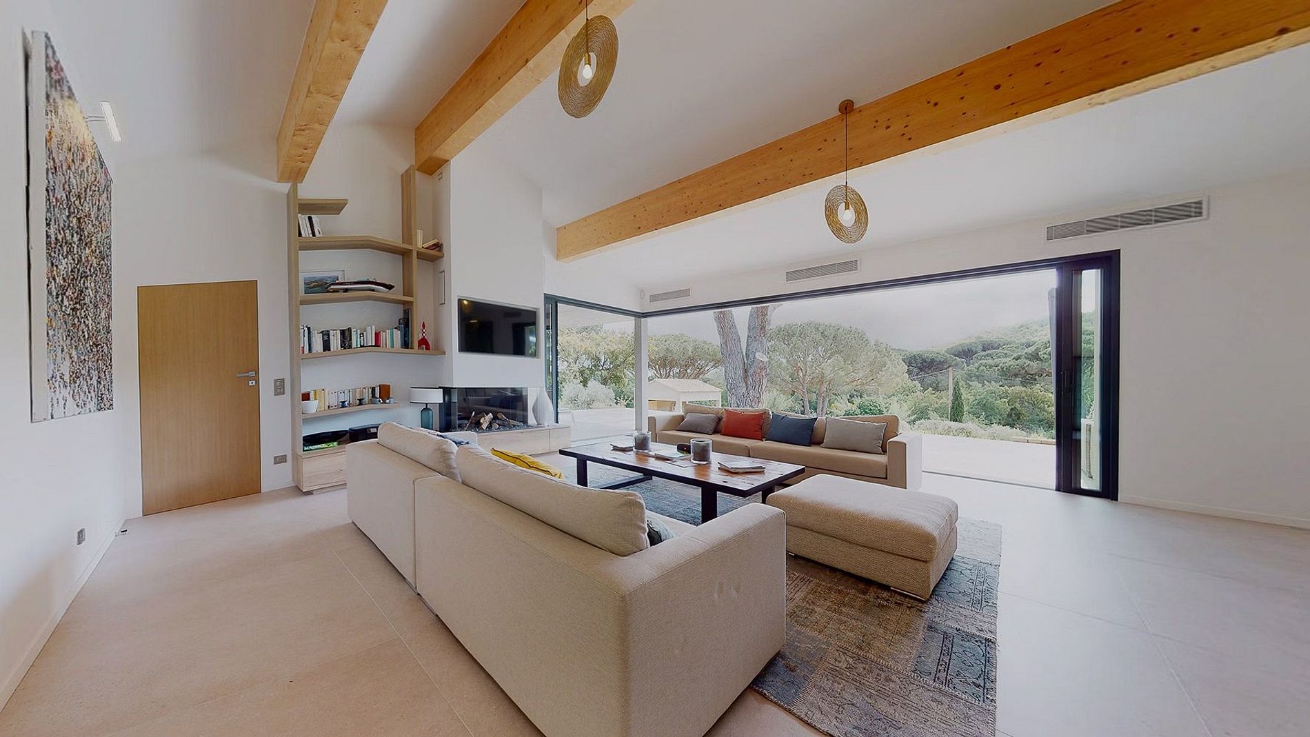 La Villa Cigala combina el confort moderno con la autenticidad, presentando una hermosa sala de estar bañada de luz gracias a los grandes ventanales que se abren a la terraza y al jardín. La sala de estar, equipada con una chimenea y vigas de madera cálida, crea una atmósfera acogedora y confortable. La cocina abierta, completamente equipada, es perfecta para momentos compartidos y de convivencia.