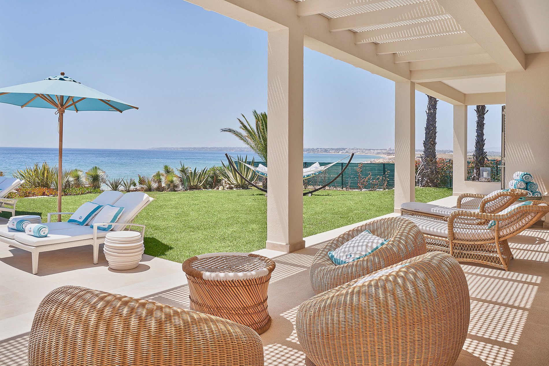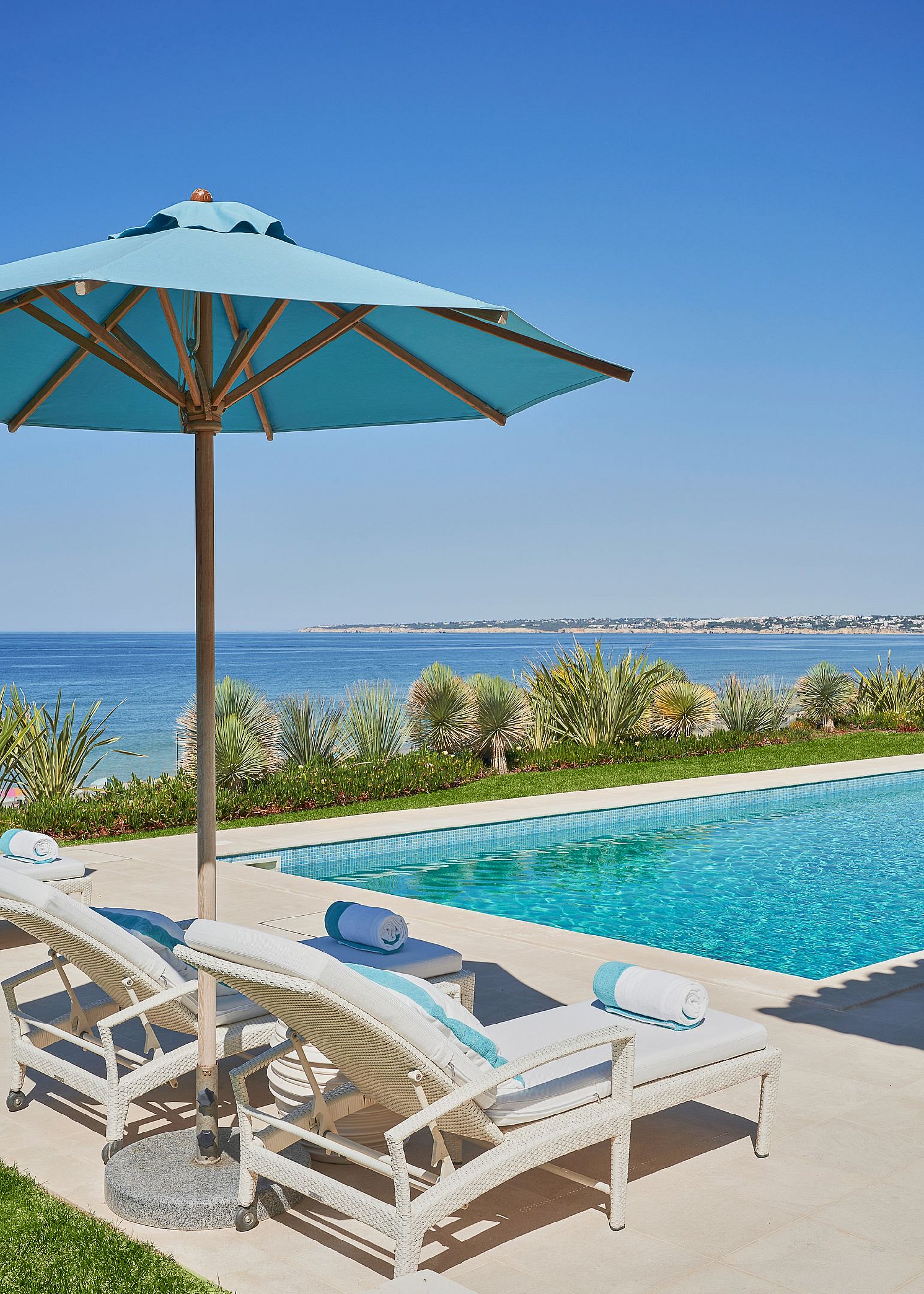 Una piscina privada y un jardín cuidadosamente diseñado con una vista impresionante del Océano Atlántico es el lugar perfecto para cócteles por la noche con amigos con una impresionante puesta de sol.