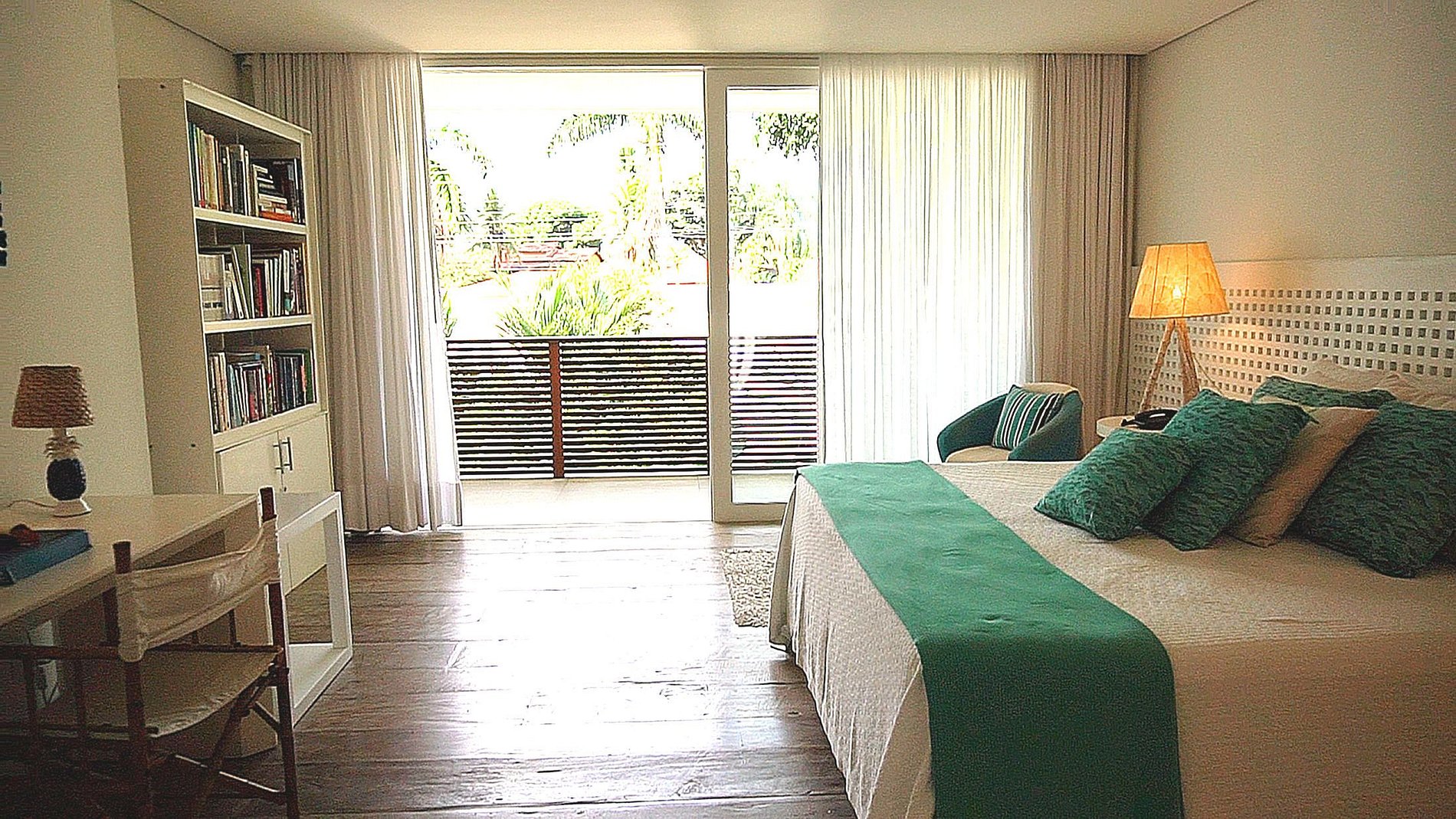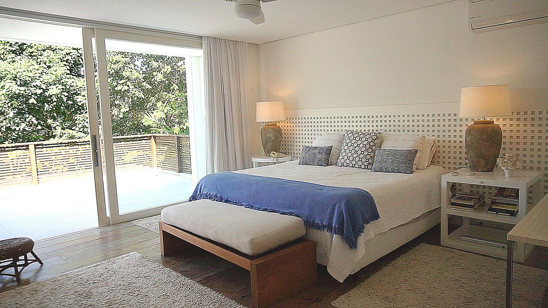 Con 635m² de superficie construida sobre una parcela de 2.000m², la casa consta de cinco habitaciones, cinco suites y dos baños. Las habitaciones son amplias y bien iluminadas, con muebles de diseño y decoración brasileña que destaca a los artistas y artesanos locales. El salón abierto a la terraza y piscina es el lugar ideal para recibir a amigos y familiares.