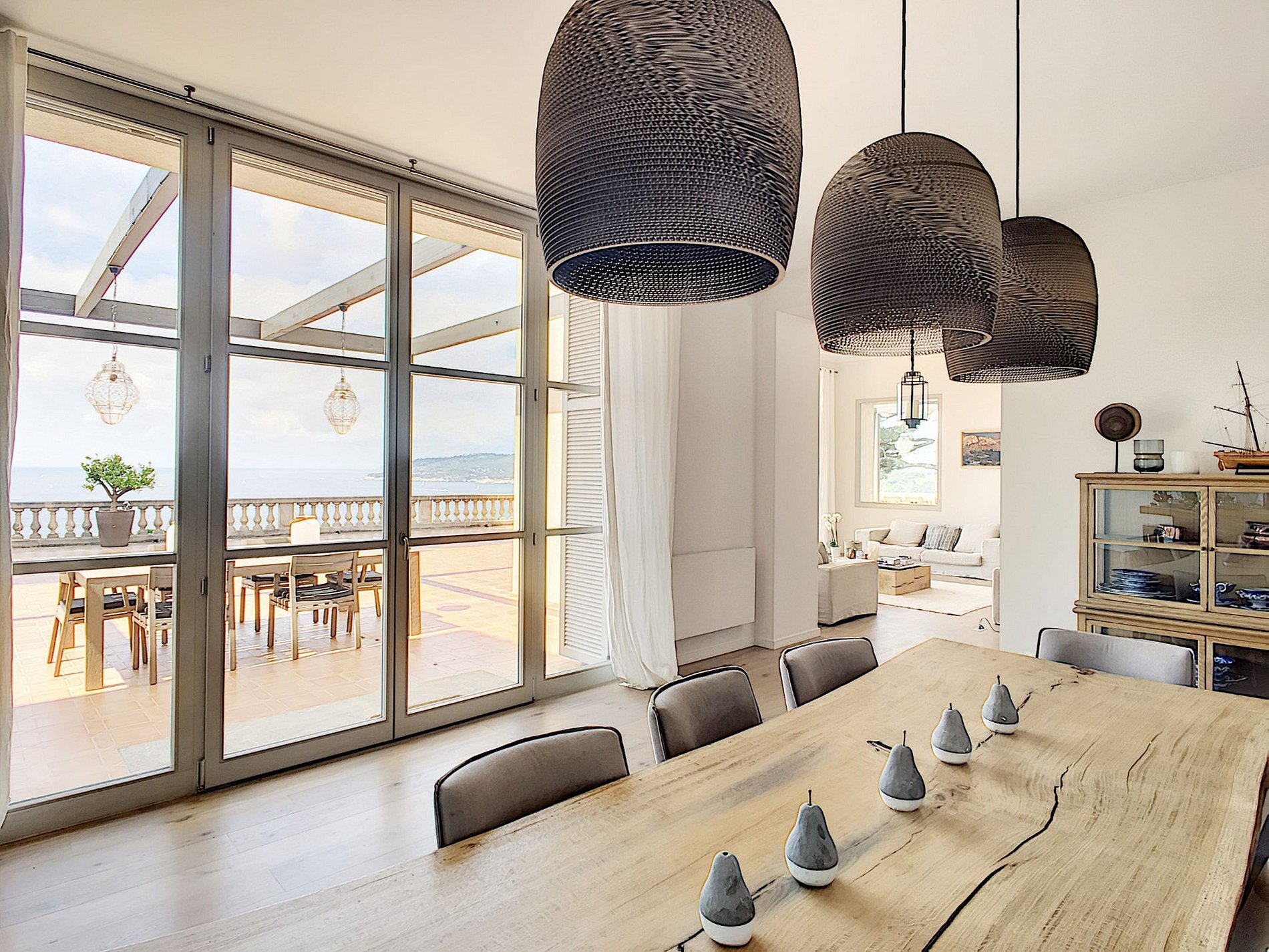Esta excepcional villa de 600 metros cuadrados fue completamente renovada en 2017 para combinar modernidad, simplicidad, confort y tecnología. Cuenta con dos salas de estar, un comedor y una cocina con vistas al mar, doce habitaciones que pueden acoger cómodamente a veintiséis huéspedes y una gran piscina (13x4,5 m), climatizada de abril a octubre, y un jacuzzi climatizado durante todo el año.
