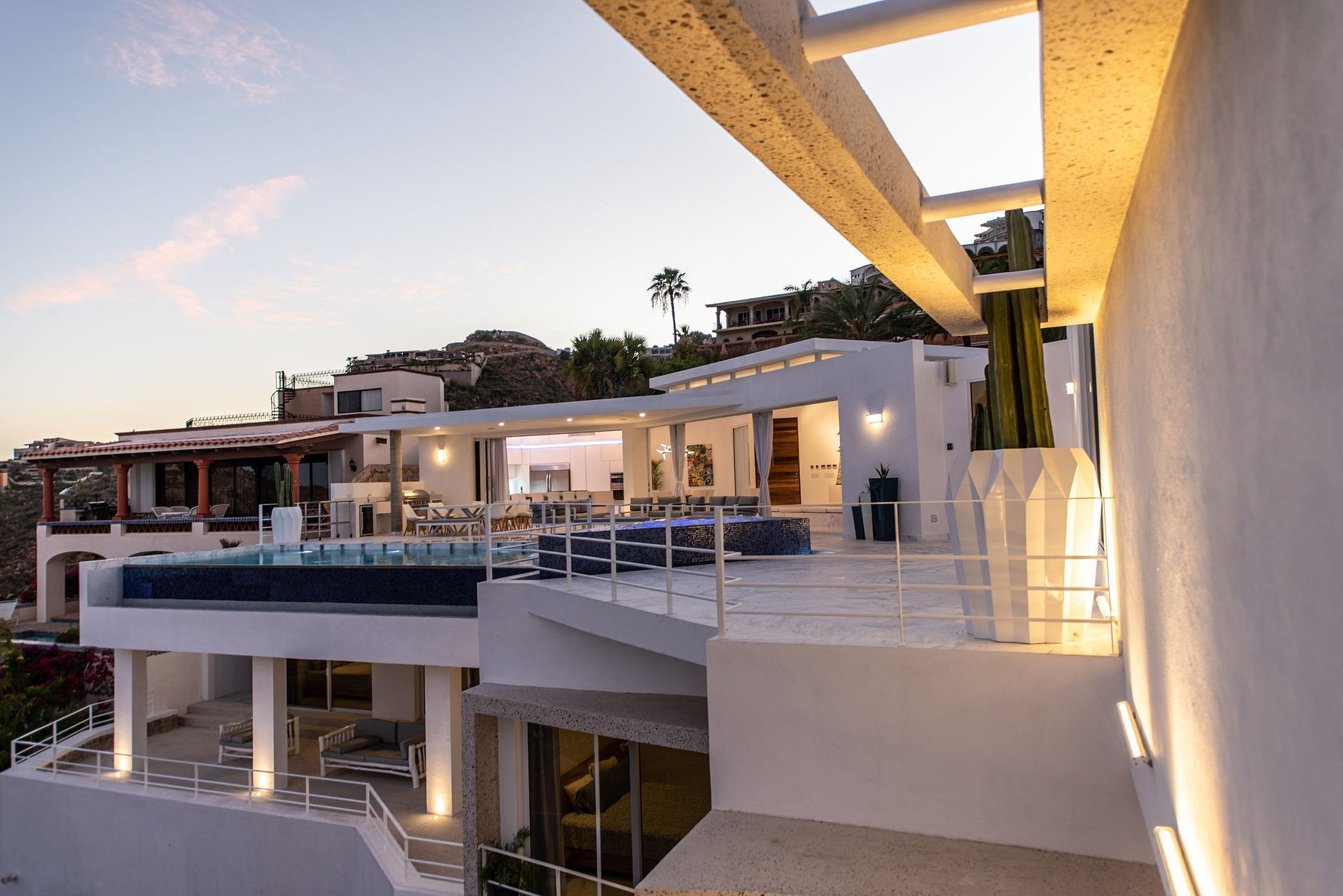 Esta casa de 9 suites es uno de los rincones más bellos de este oasis llamado Cabo de San Lucas. Construida en una ladera, la villa ofrece una de las vistas más increíbles de la ciudad, el puerto y el mar en la región de Los Cabos.