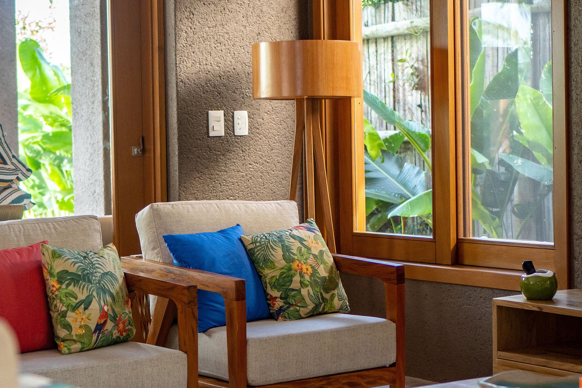 En el primer piso hay dos hermosas suites con vistas al mar. Uno con cama queen size y litera. Y la suite principal con cama king size, y un hermoso escritorio para momentos de inspiración.