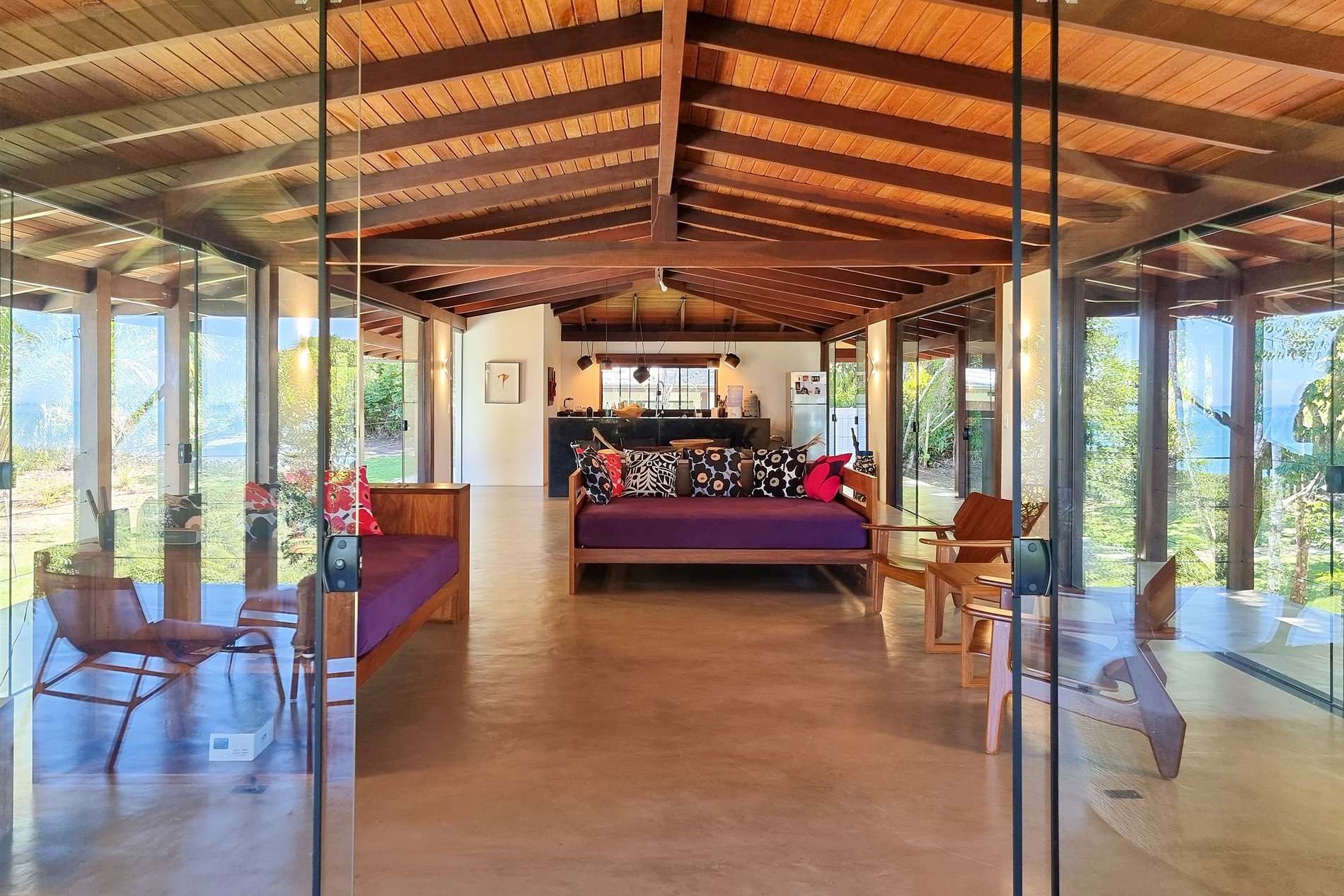 Esta casa es totalmente nueva y fue diseñada por un arquitecto extranjero y erigida por un constructor renombrado. Son 5.000 m² de jardín con hermoso visual del mar y 400 m² de área construida siendo 375m² de casa principal y 25m² de suite adjunta.En torno a la residencia, hay una hermosa zona de preservación natural.