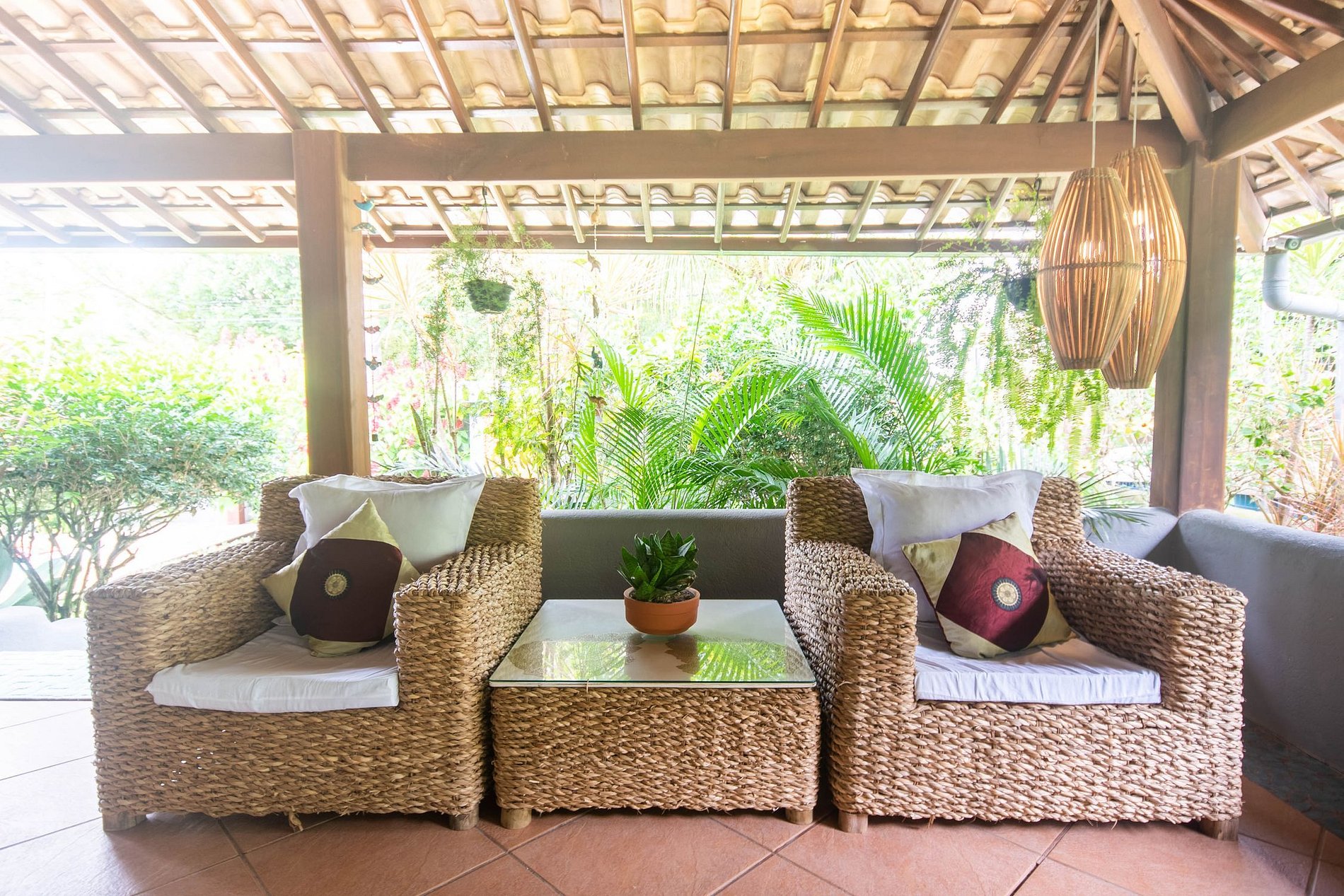 Esta encantadora residencia tiene 3 plantas y ofrece 4 espaciosas suites, todas equipadas con aire acondicionado split y ropa de cama y toallas de calidad. Además, encontrará una sala de entretenimiento, cocina completa, un elegante bar, tocador y amplias y aireadas terrazas que rodean los jardines, brindando espacios para comidas, trabajo y momentos de relajación.