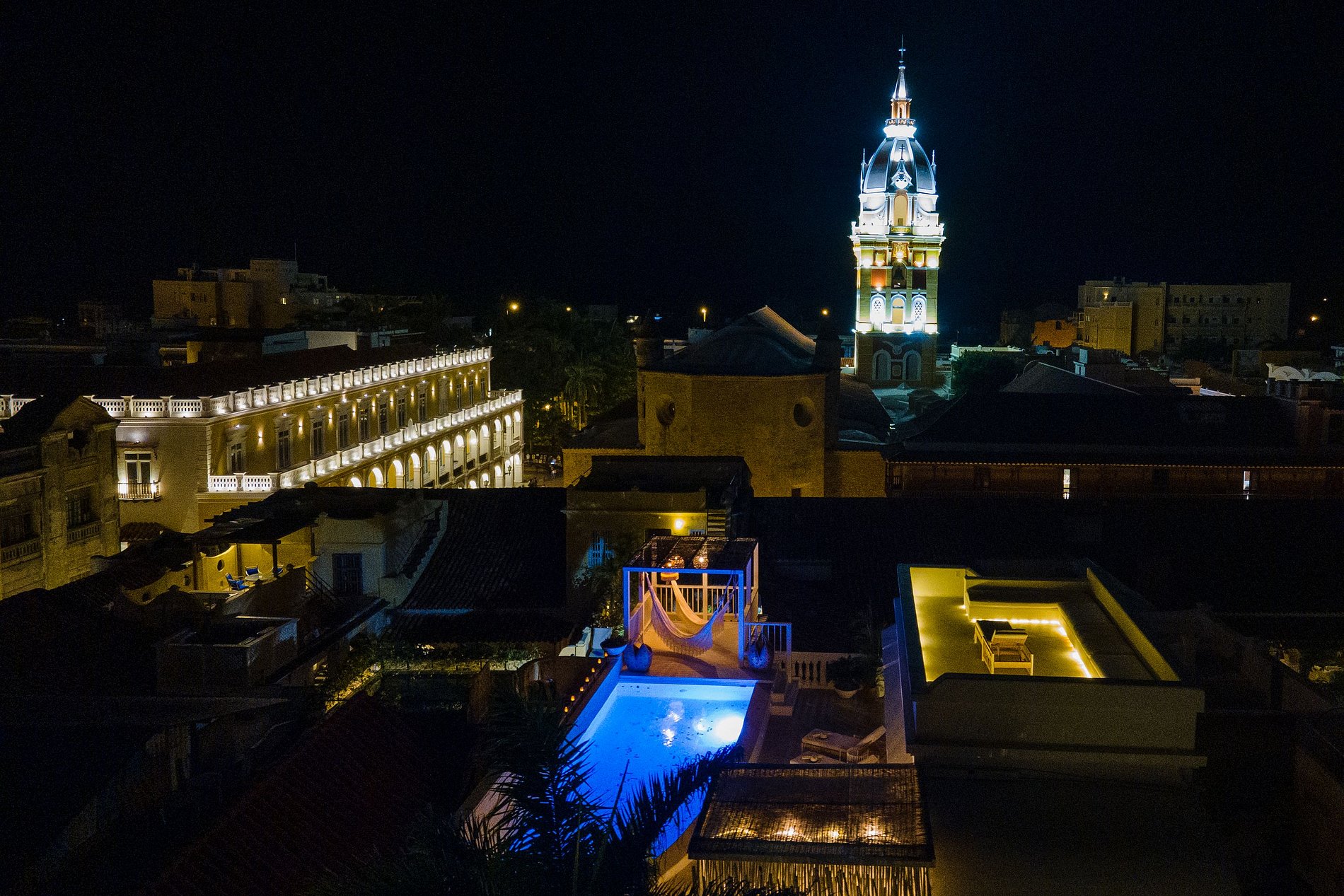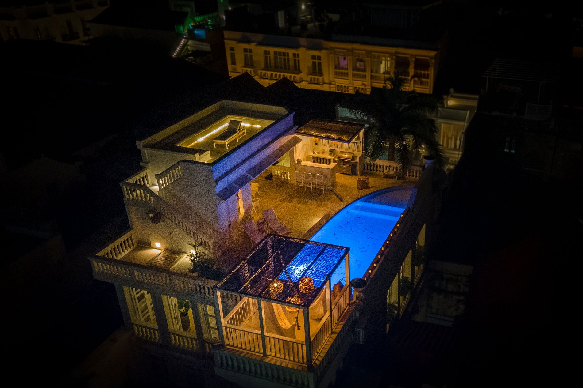 Elegante casa de 11 lujosas habitaciones, 3 piscinas y espectaculares terrazas con vistas a la ciudad amurallada de Cartagena.