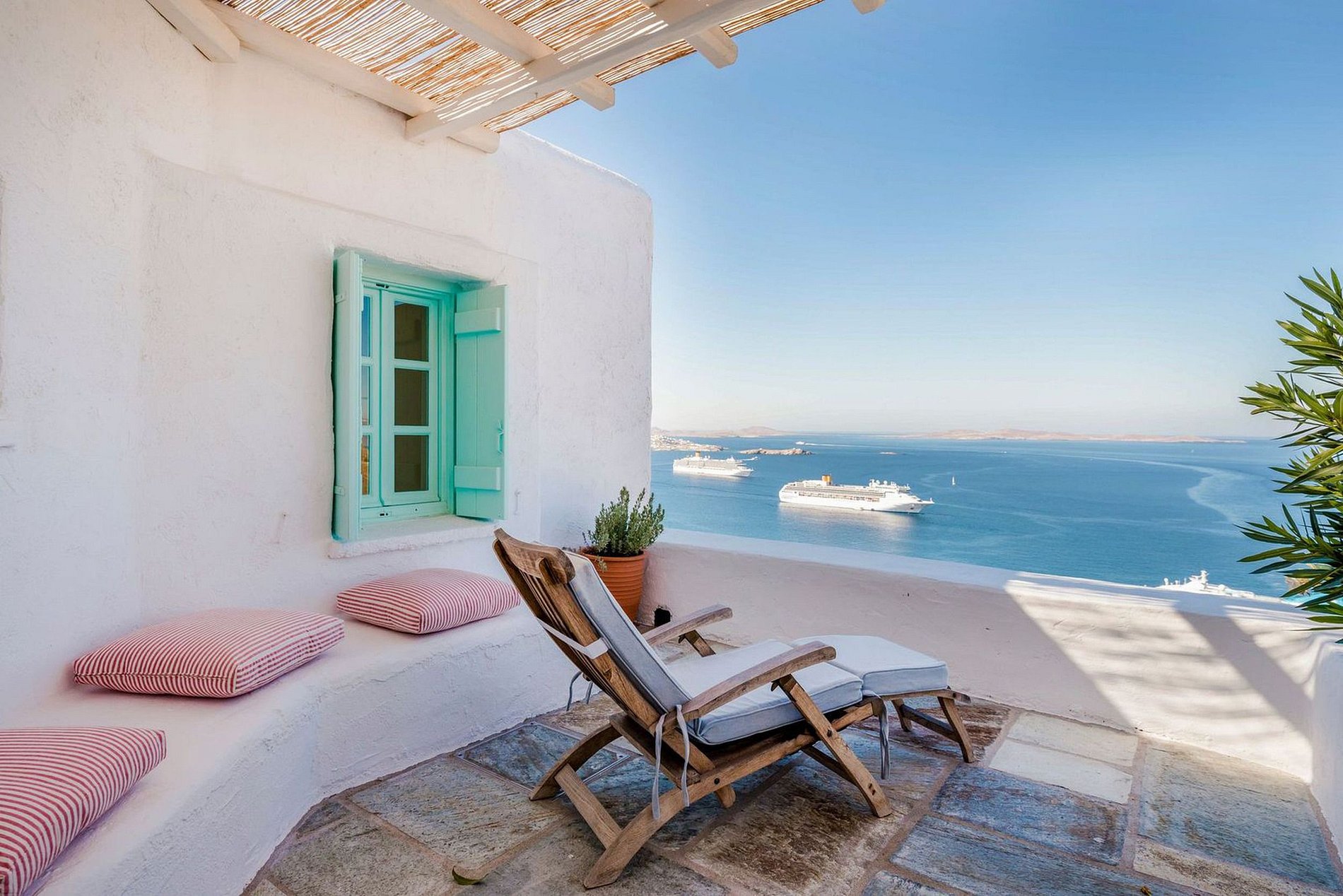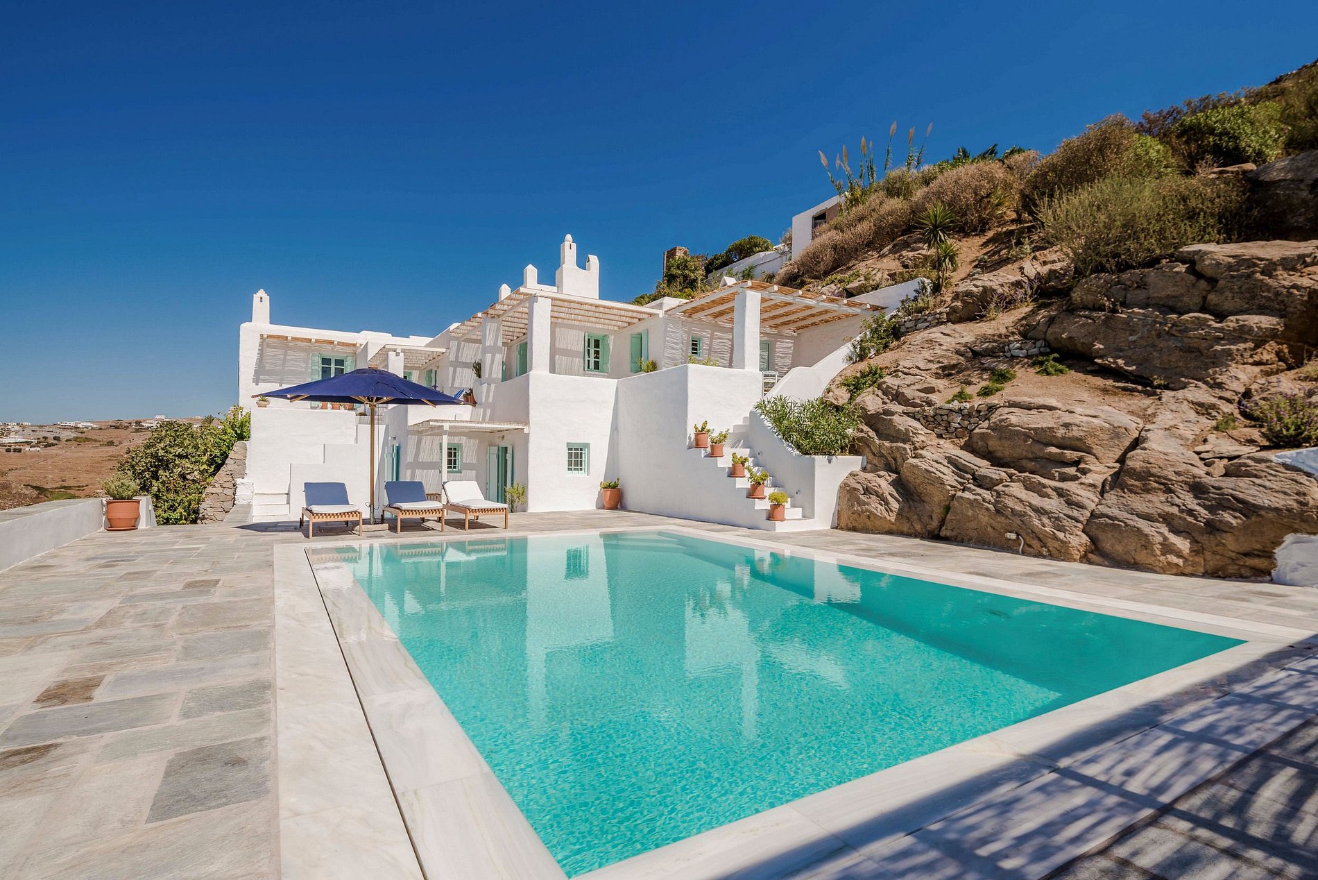 • Playas más cercanas: Principote Beach Club a 4 km, Agios Sostis (playa natural) a 5 km, Ornos (muchos clubs de playa) a 5,5 km