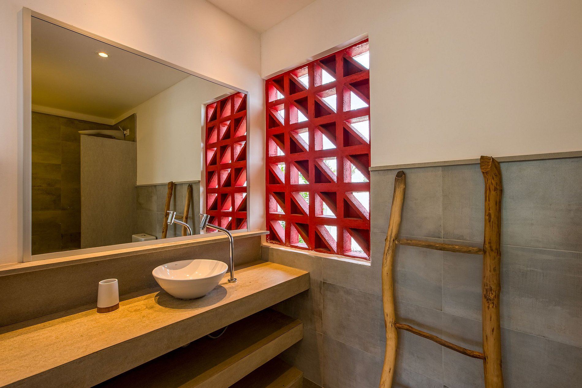 La playa de Sibauma y el océano están a 100 metros a través de una escalera que desciende desde el acantilado.