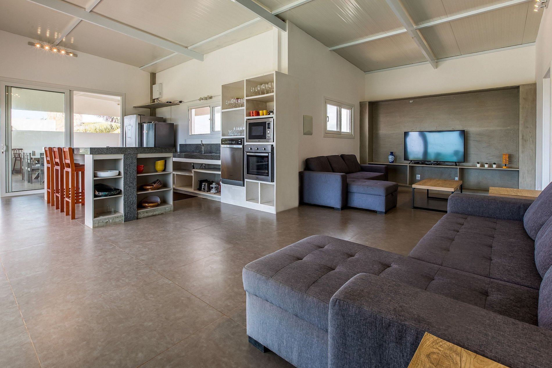 Sala de estar: gran televisor de pantalla plana y cómodos sofás cama