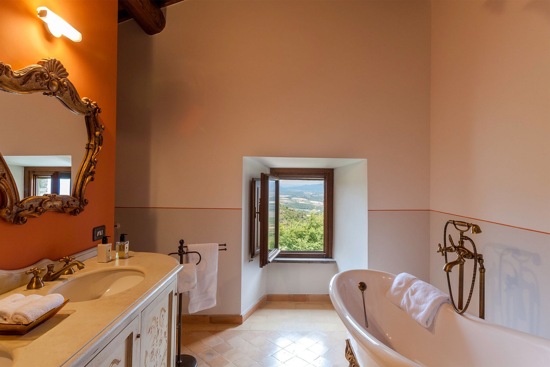Umbría es un idilio rural italiano, una región de producción excepcional de comida y vino, colinas verdes y pueblos tradicionales. Esta propiedad única dentro de una finca agrícola en Umbría presenta elementos arquitectónicos destacados de los siglos XIII y XVII, pero también ofrece un estilo contemporáneo, una decoración elegante que fusiona la tradición y el lujo moderno. Cada habitación ha sido renovada individualmente, con una hermosa colección de muebles y accesorios modernos. La finca está perfectamente situada con amplias vistas hacia Orvieto y Toscana.