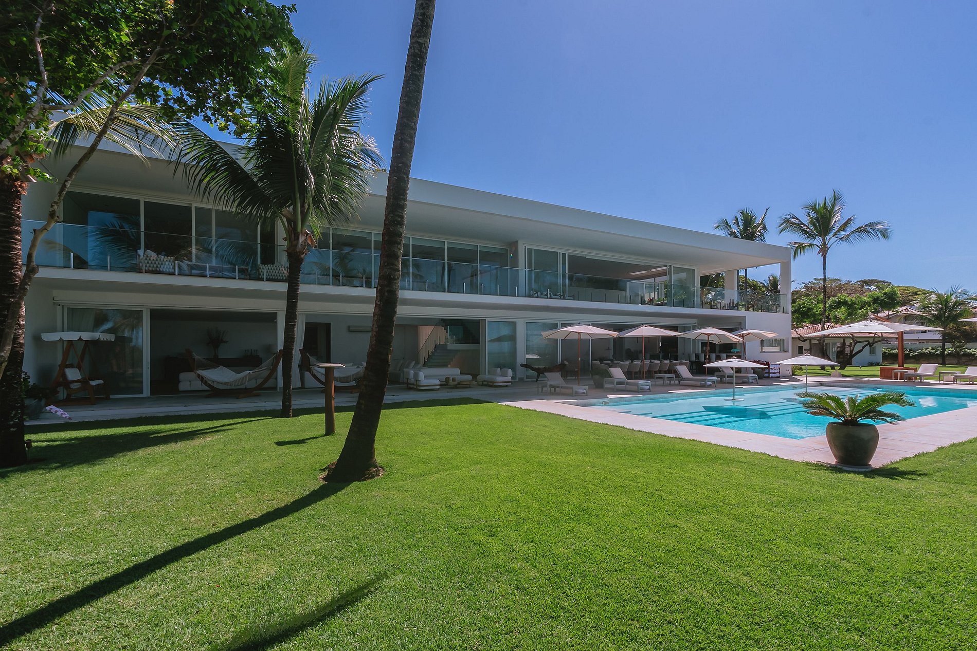 Con una arquitectura privilegiada, exuberante e imponente, la hermosa Villa está ubicada frente a la playa de Araçaipe en Arraial d´Ajuda. Playa de arena blanca, tranquila, agua cristalina, cálida, sin corriente. Un verdadero paraíso tropical.