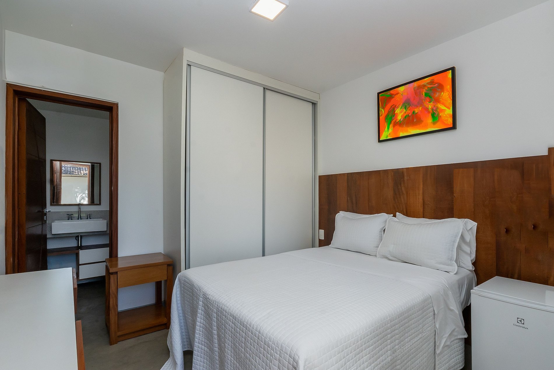 En la zona exterior hay 5 edificios con chalets individuales y entrada privada. Son chalets porque cada habitación, además de cama, baño, aire acondicionado y smart TV; También hay una encimera de granito en la cocina, nevera y microondas. Todo es siempre de gran calidad, buena decoración y confort.