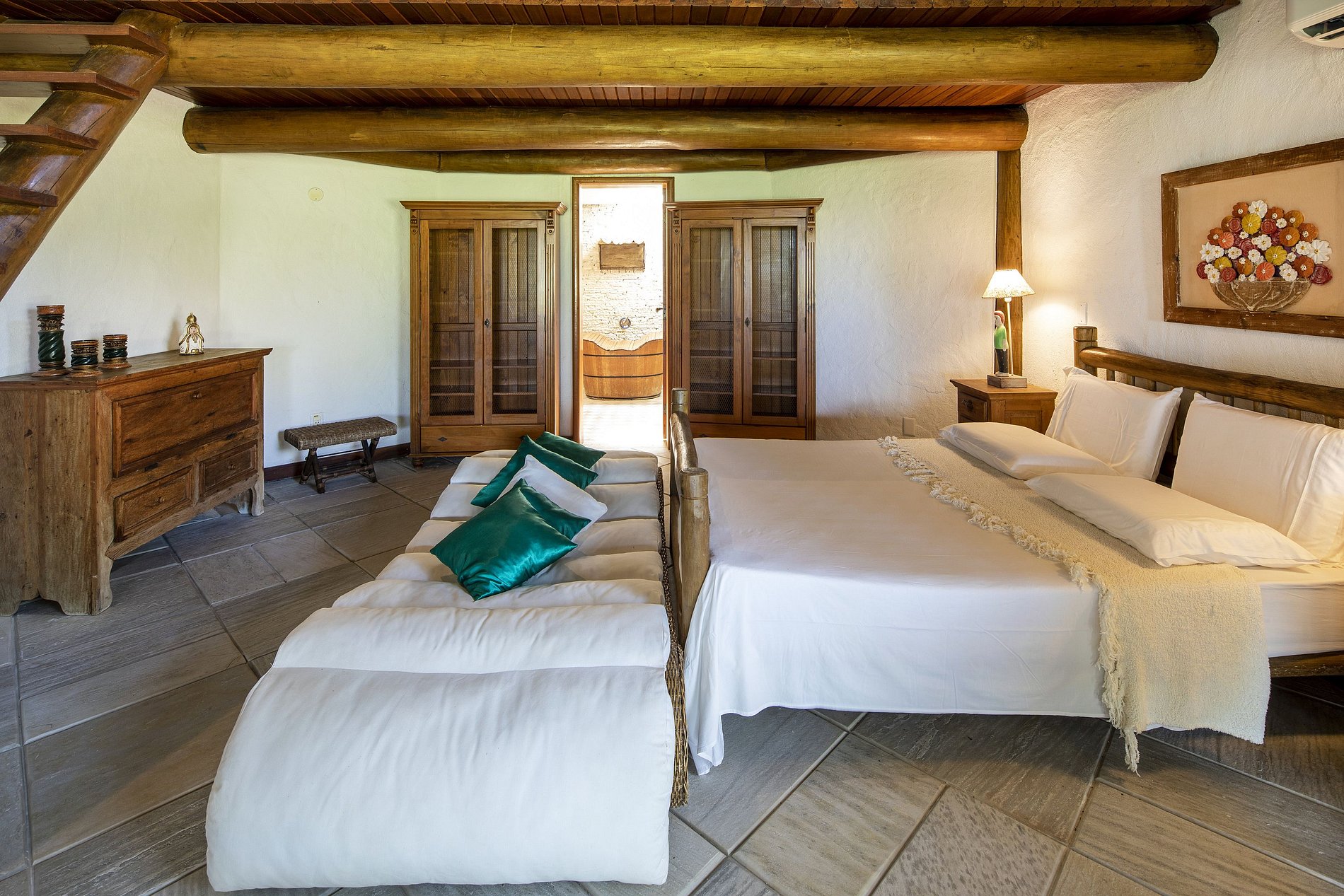 Las casas adyacentes al bungalow central reúnen las excelentes suites de la propiedad. En total hay 7 suites. 6 suites con cama queen y 1 suite con 2 camas dobles y 2 camas individuales, todas climatizadas, con closet, amplios baños con tina de madera y lounge al aire libre.