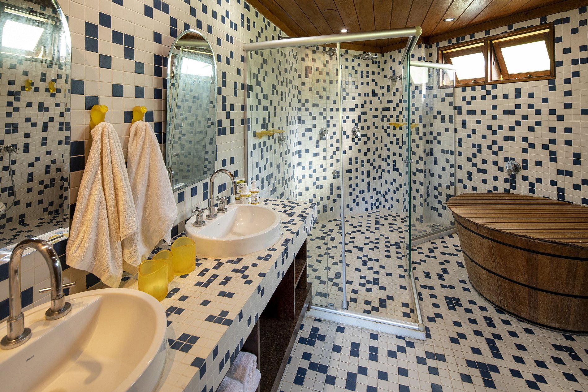 Las casas adyacentes al bungalow central reúnen las excelentes suites de la propiedad. En total hay 7 suites. 6 suites con cama queen y 1 suite con 2 camas dobles y 2 camas individuales, todas climatizadas, con closet, amplios baños con tina de madera y lounge al aire libre.
