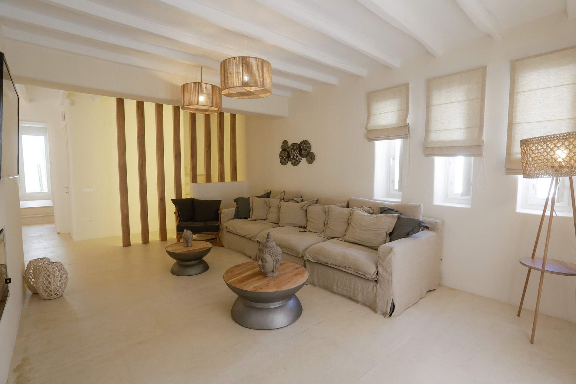 Esta villa en el corazón de Kanalia se encuentra frente al mar y los emblemáticos molinos de viento, a dos minutos de Ornos y a pocos kilómetros del centro de la ciudad.