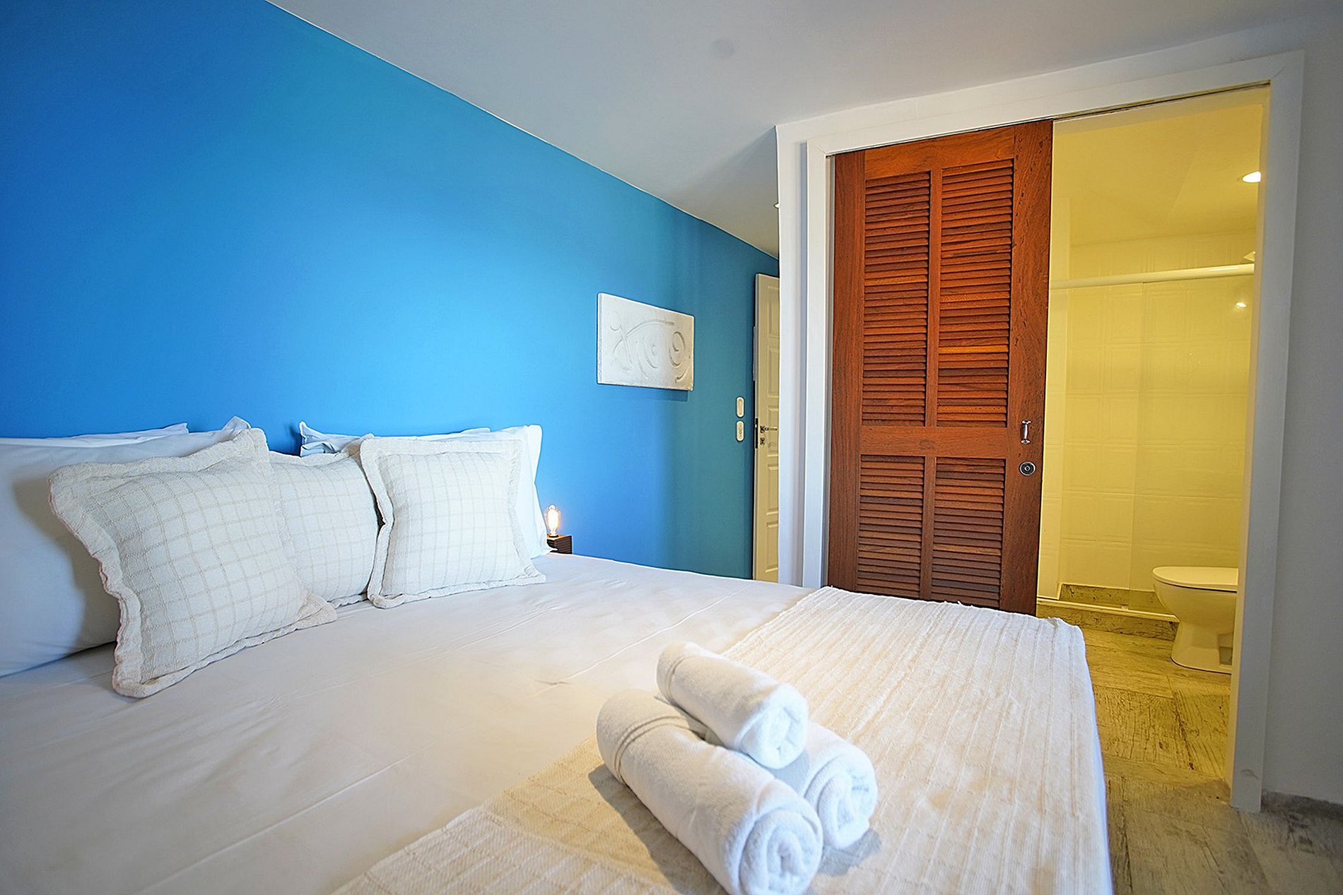 Al entrar a la casa, la primera vista que tiene es la cómoda área de espera y recepción con una increíble vista al mar en Búzios. Cada una de las 10 suites tiene aire acondicionado con camas tamaño queen, minibar, televisión por cable, balcón compartido y una decoración sencilla que le da a las habitaciones un hermoso encanto costero. De las 10 suites, la casa tiene en el último piso, dos espaciosas master suites con cómodos sofás y una hermosa vista panorámica del mar de Búzios.