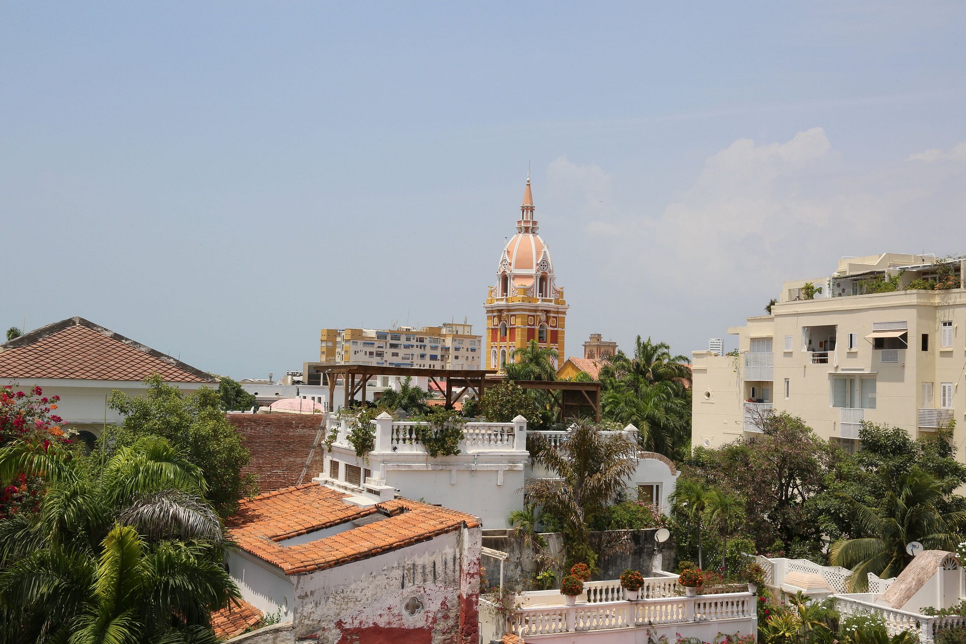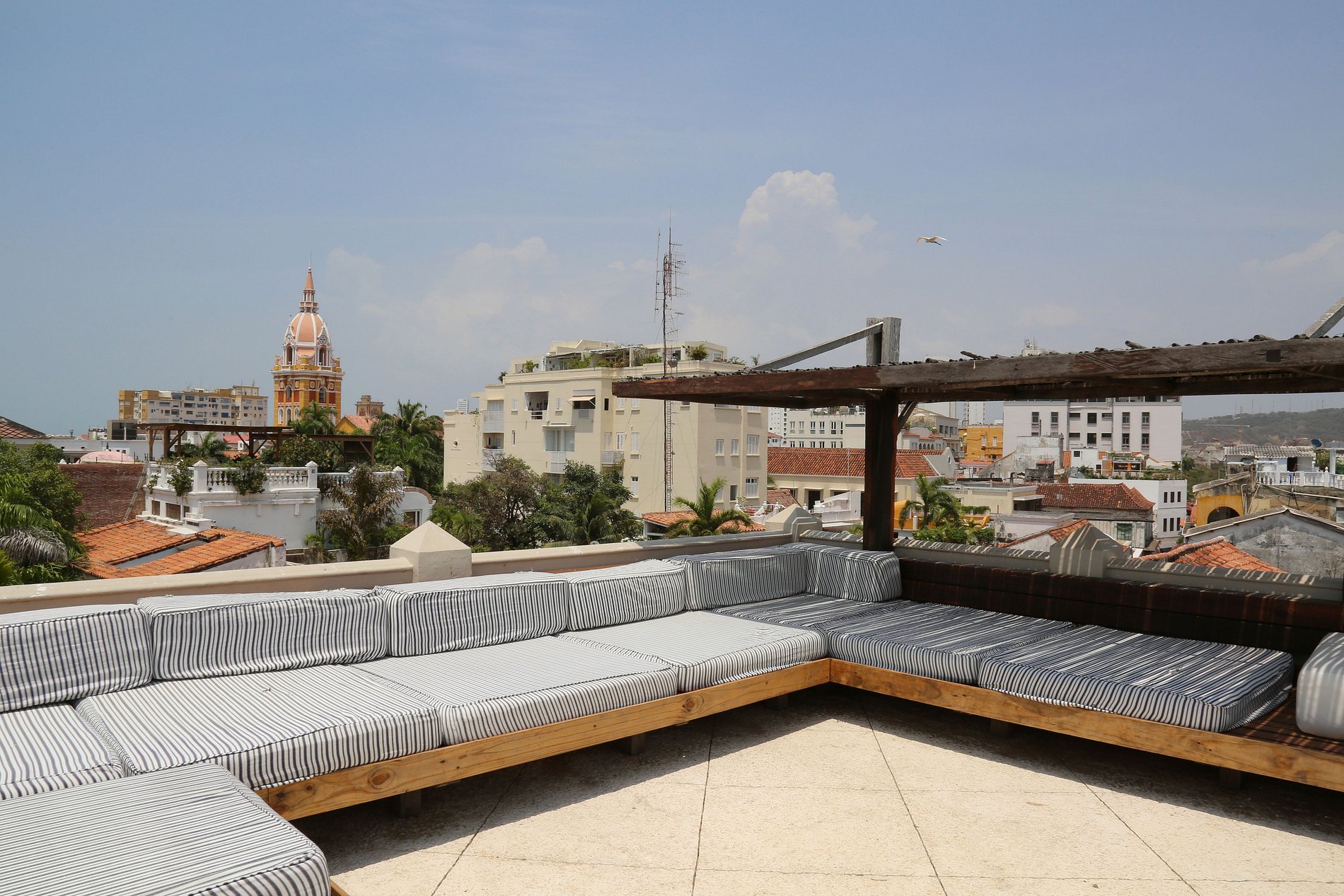 Desde allí se puede disfrutar de la vista de los lugares más concurridos de Cartagena: la Iglesia de San Pedro, el Hotel Charleston y el mar.