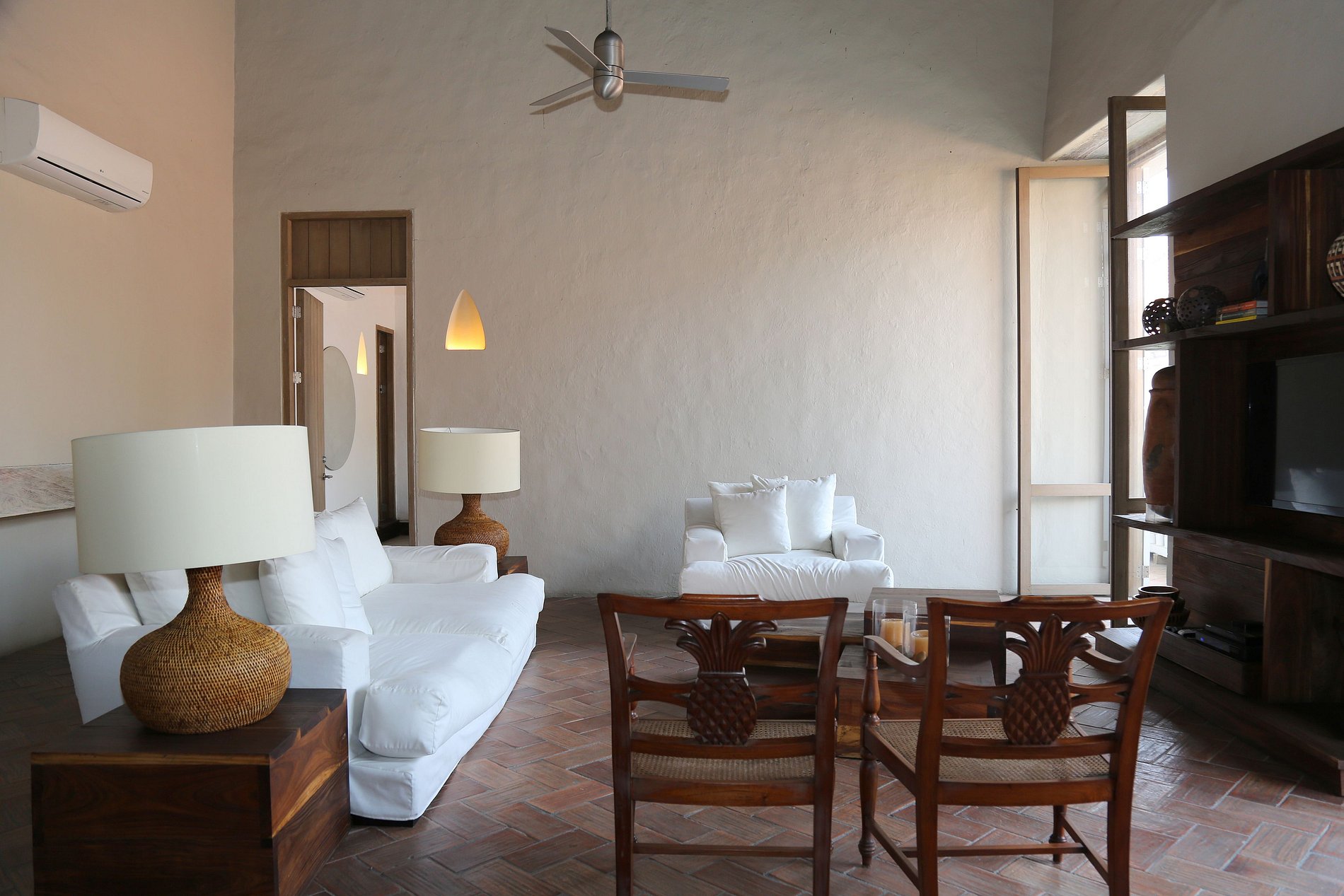 En el segundo piso encontrará amplias habitaciones con aire acondicionado y baños de lujo. Uno tiene una vista majestuosa del paisaje Cartagenero y sus calles históricas. El balcón se conecta con la sala de estar y dos de los dormitorios.