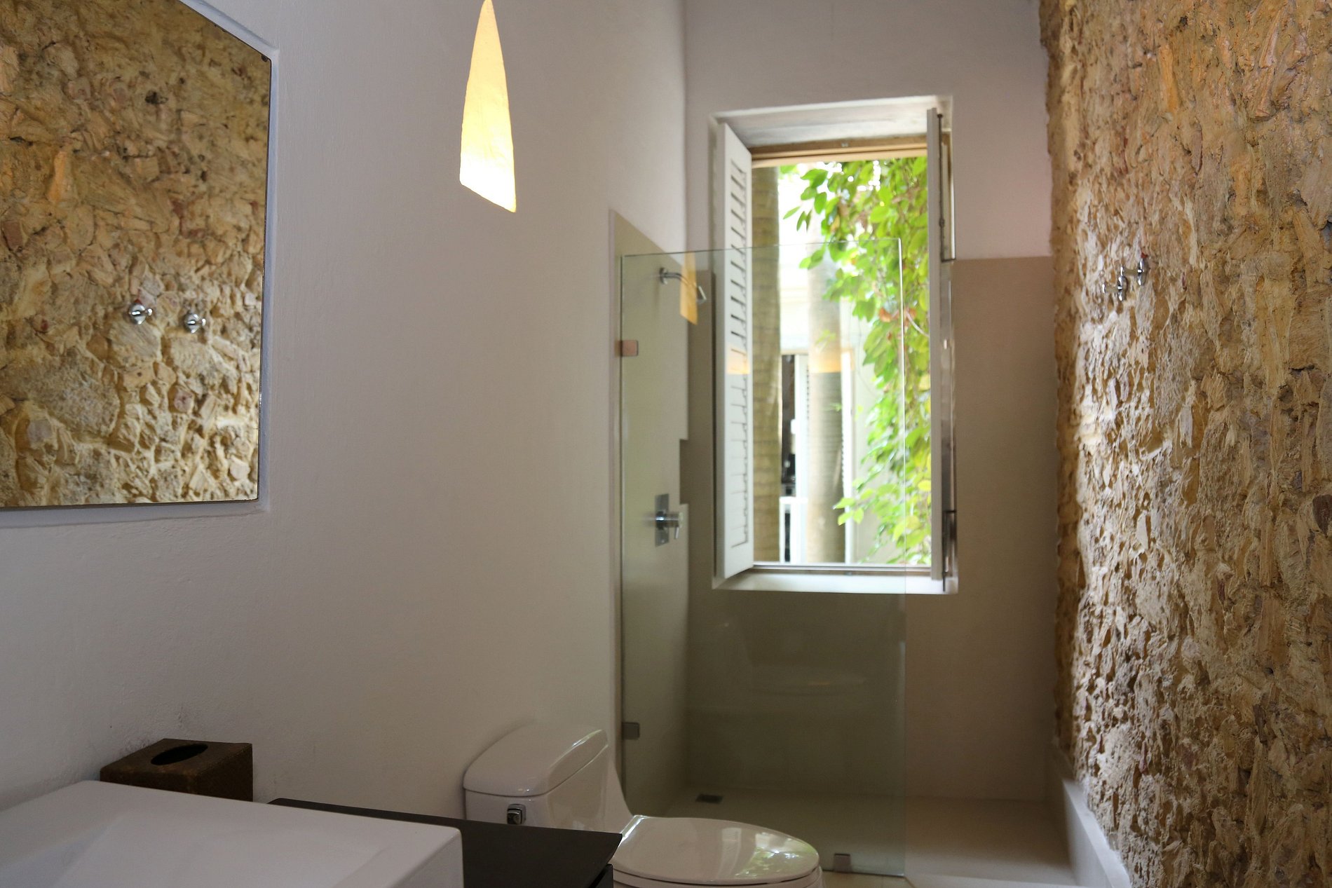La habitación principal es un verdadero paraíso, tiene un gran baño con paredes de piedra que te hará sentir en un entorno tropical con balcón y jardín incluidos.