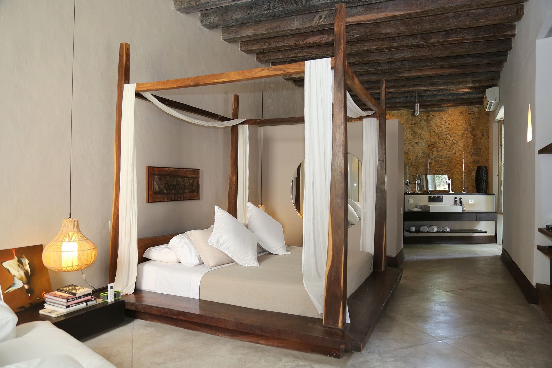 En el segundo piso encontrará amplias habitaciones con aire acondicionado y baños de lujo. Uno tiene una vista majestuosa del paisaje Cartagenero y sus calles históricas. El balcón se conecta con la sala de estar y dos de los dormitorios.