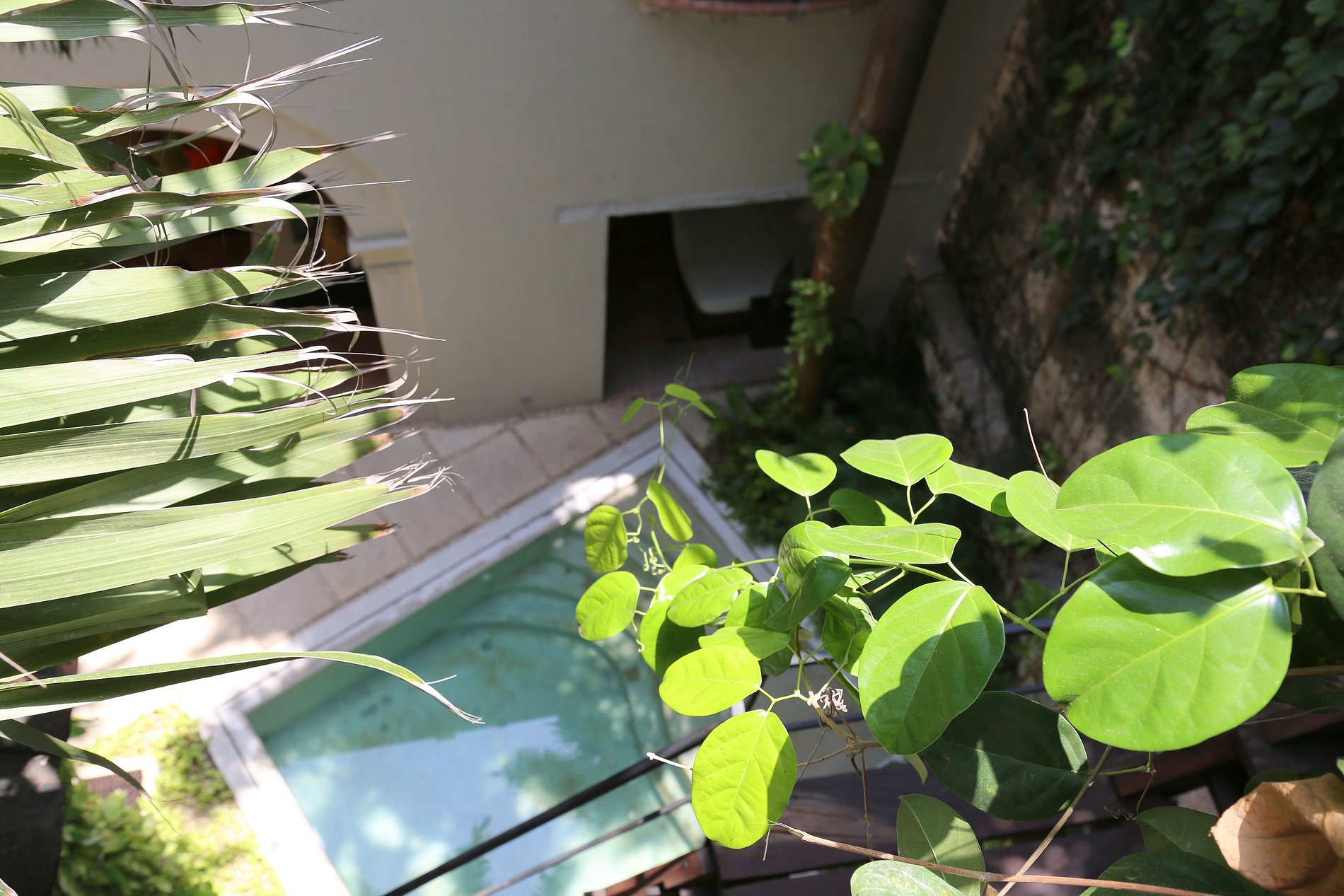 En el primer piso, el área social está rodeada de jardines y la piscina se encuentra en el centro del patio de 60 años.