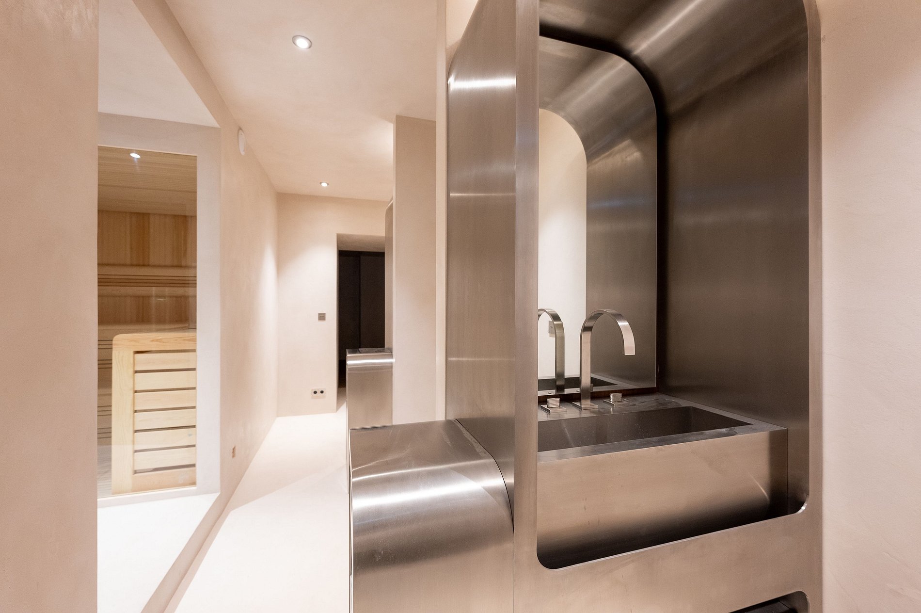 El sótano de este exquisito apartamento está dedicado a la relajación y al entretenimiento. Cuenta con una zona de spa privada, que incluye una sauna y un hammam, proporcionando el refugio perfecto para relajarse después de un día ajetreado. Además, en este nivel también se encuentra un elegante bar, ideal para recibir a amigos y socios de negocios en un ambiente íntimo y chic.