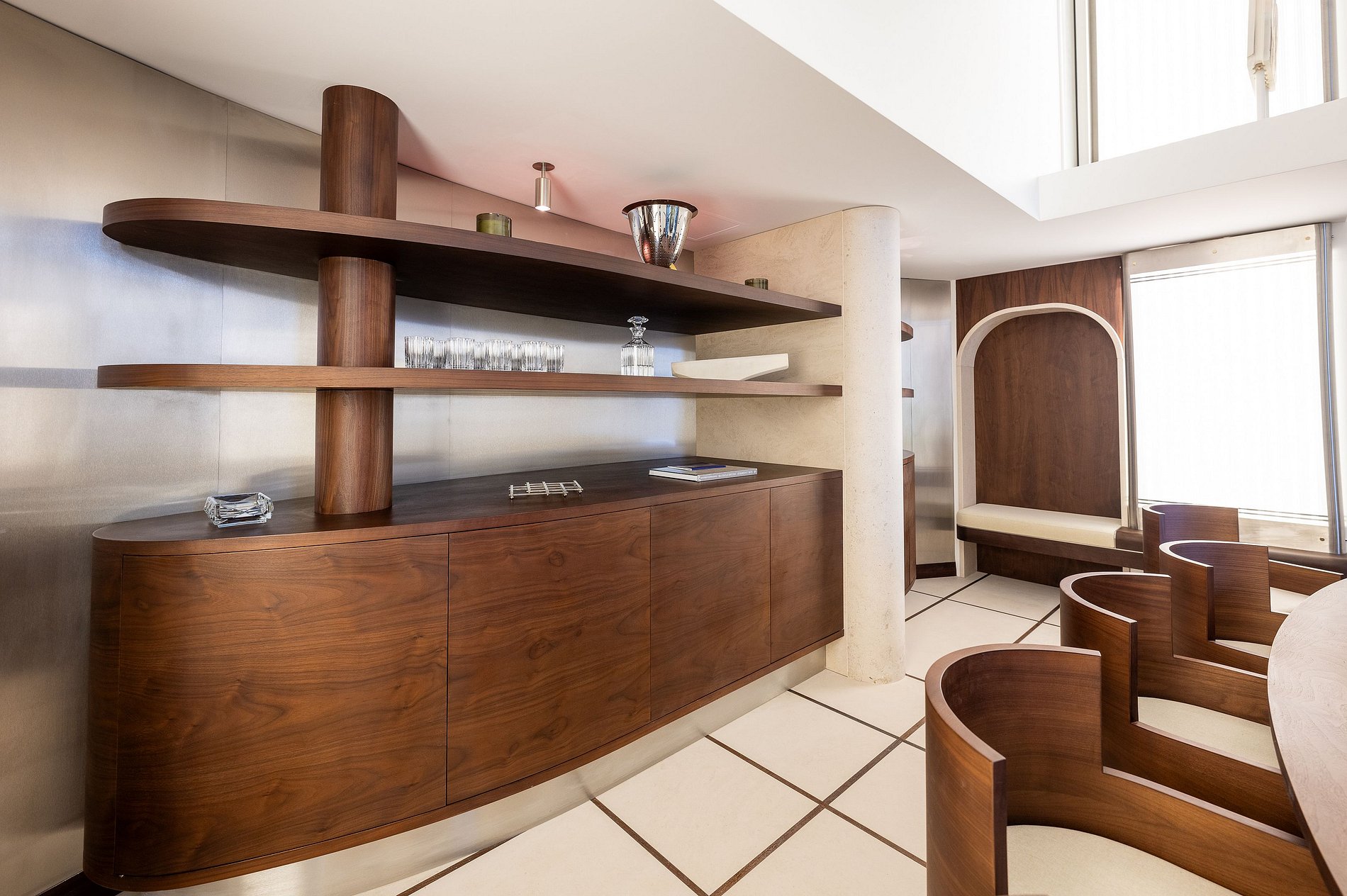 Esta impresionante propiedad se extiende a lo largo de tres niveles y es un verdadero homenaje a la estética única de Lagerfeld, combinando exclusivas maderas nobles y refinados toques metálicos que capturan la esencia de su estilo.