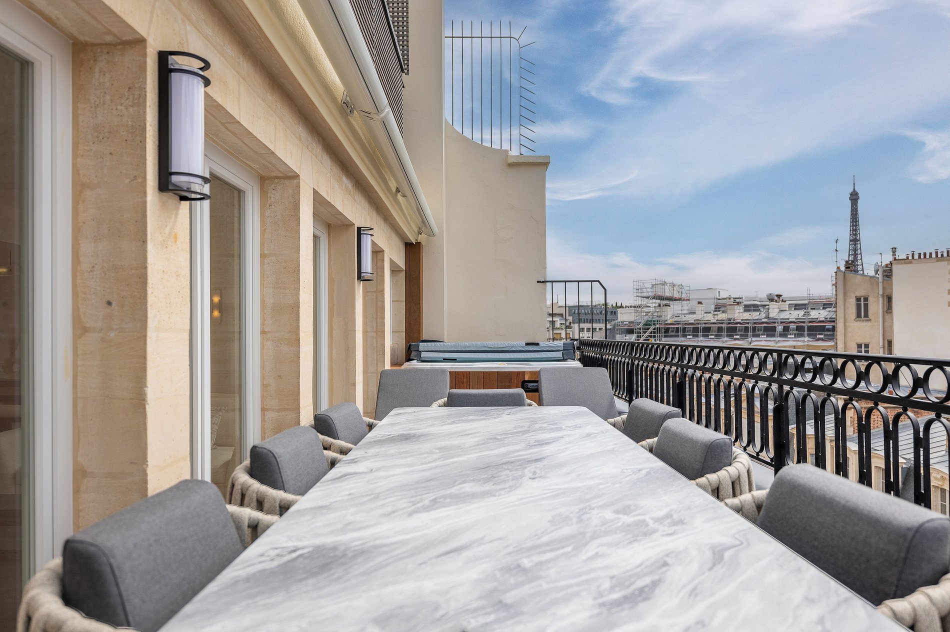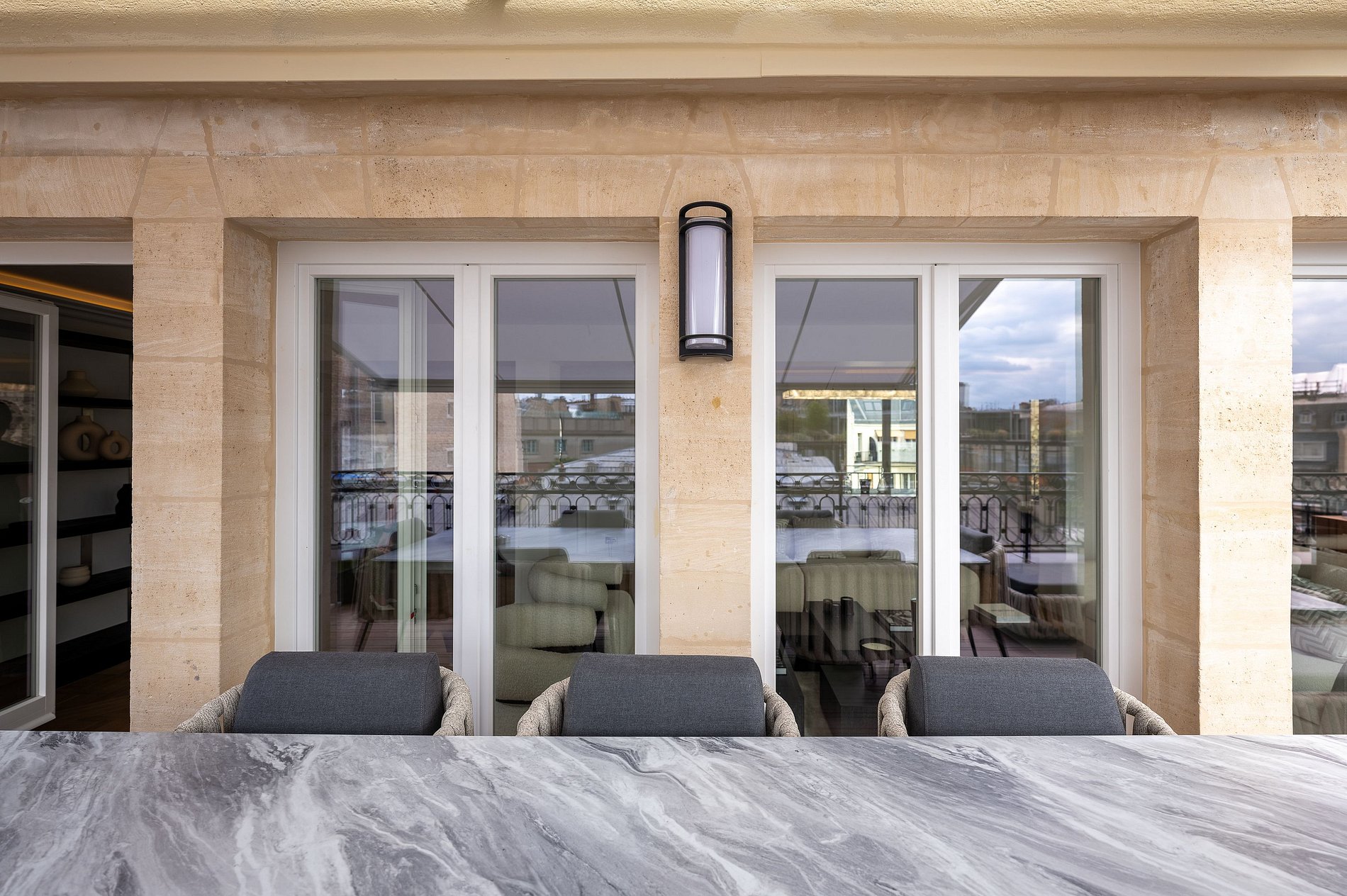Cada dormitorio cuenta con su baño privado, lo que garantiza confort y privacidad a cada huésped. La amplia terraza privada es un verdadero oasis urbano, equipada con su cocina exterior, bar y un espacio para comidas al aire libre, ideal para disfrutar de una copa de champán al atardecer o recibir invitados con el skyline de París como telón de fondo.