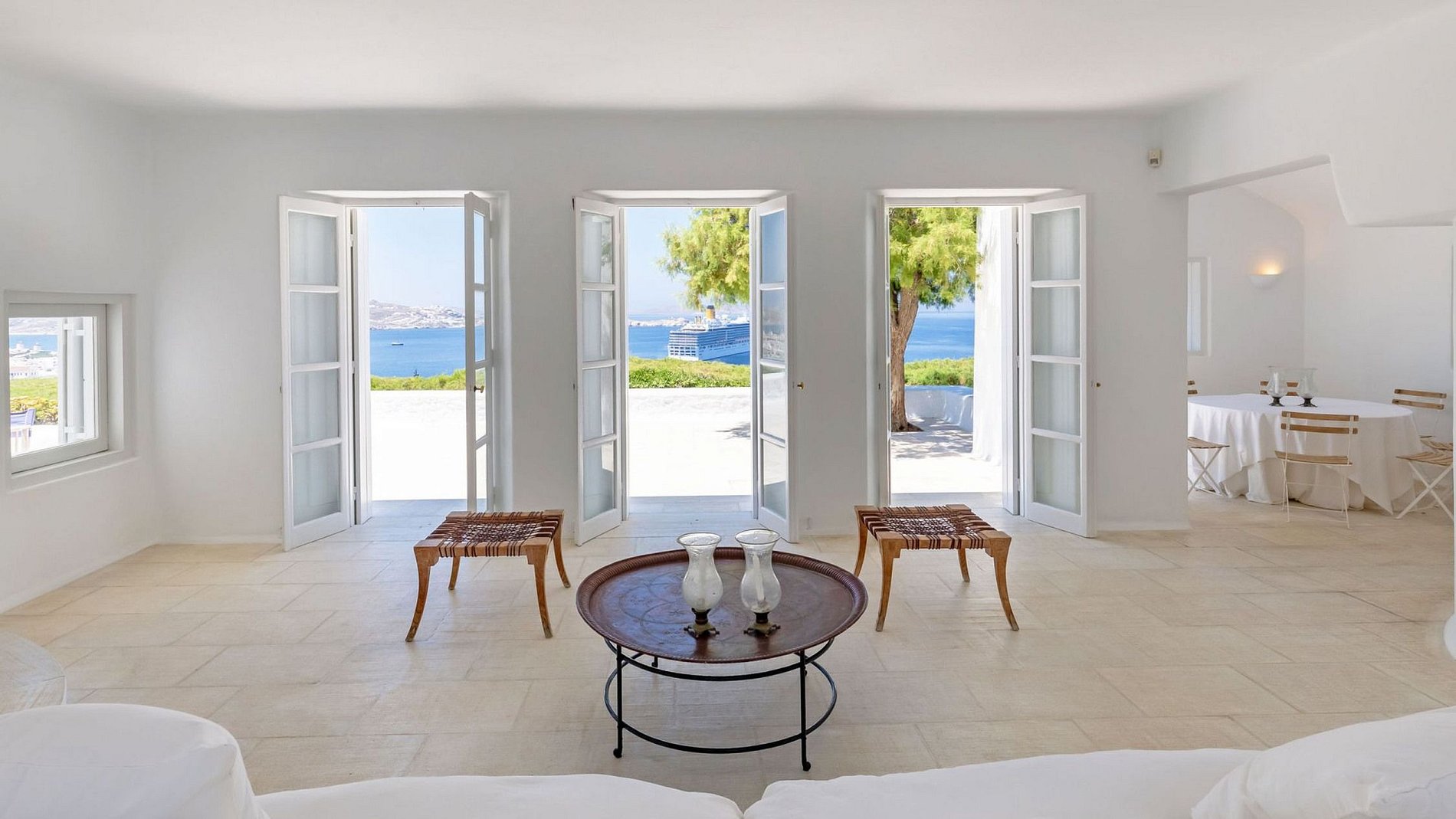 Esta villa con un diseño de tipo minimalista se encuentra justo encima del antiguo puerto de Mykonos y está rodeada de más de 60 olivos. Un camino de piedras blancas lleva a los huéspedes a una pérgola sombreada incorporada a lo largo del olivar, lo que permite una agradable cena al aire libre. A solo tres minutos a pie del casco antiguo, la villa está ubicada en medio de un gran jardín y tiene vistas al puerto, las islas de Rhenia, Syros y Tinos.