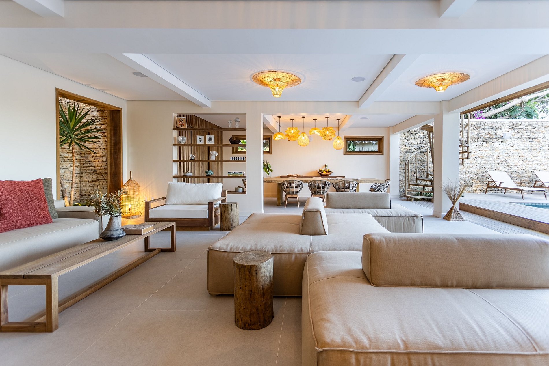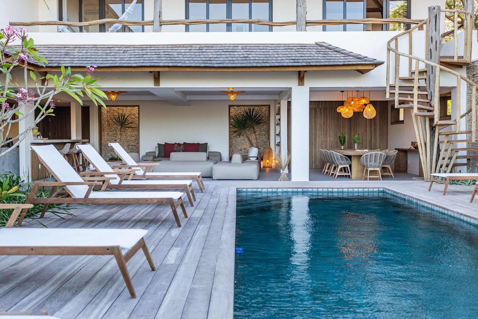 La exuberante villa se encuentra frente a las relajantes dunas del Parque Nacional Jericoacoara, a 5 minutos del animado centro, es una verdadera obra maestra de sofisticada arquitectura rústica.
