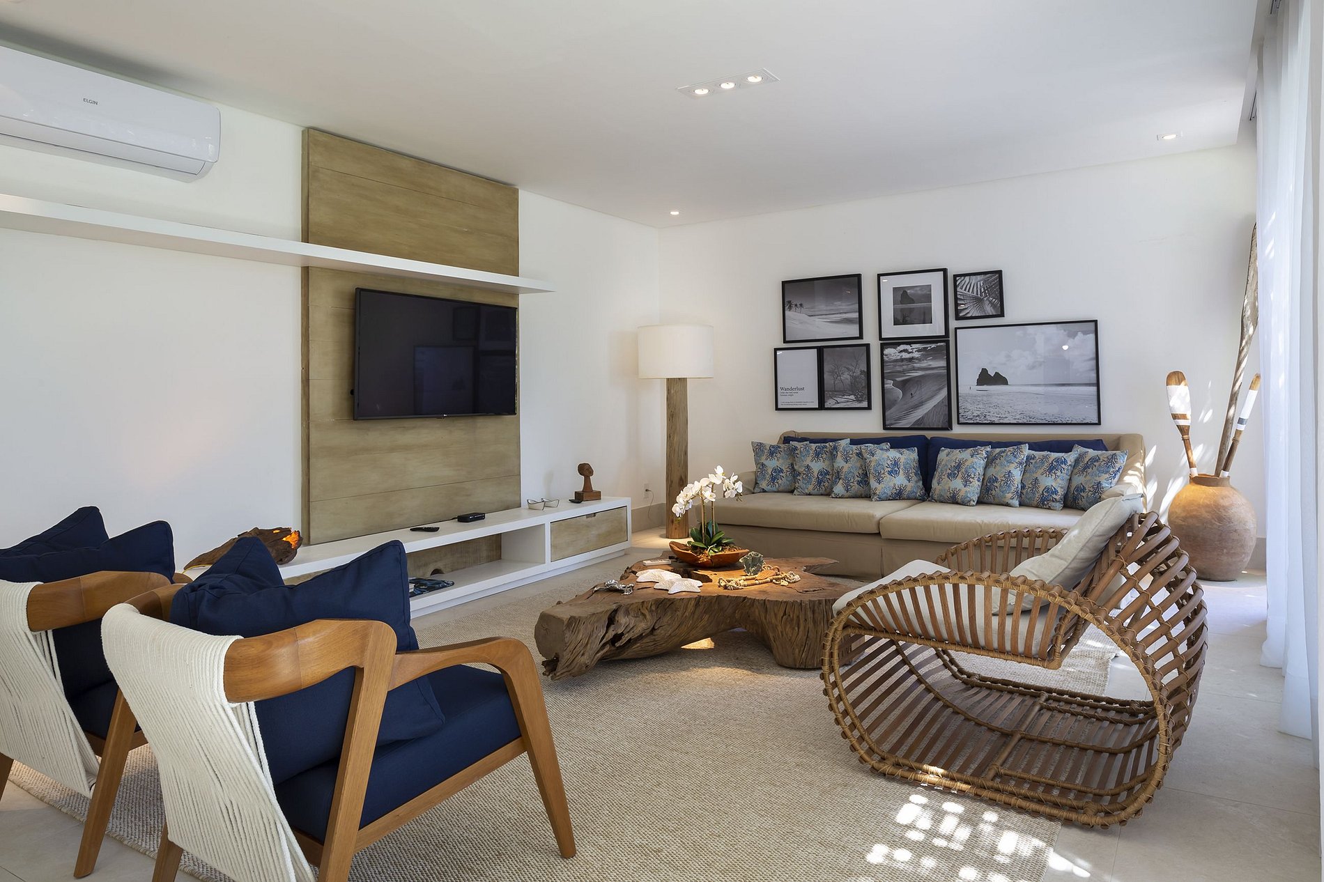 El living tiene una decoración increíble con sistema de tv integrado con inodoro, canales sky, mesa para 6 personas y aire acondicionado.
