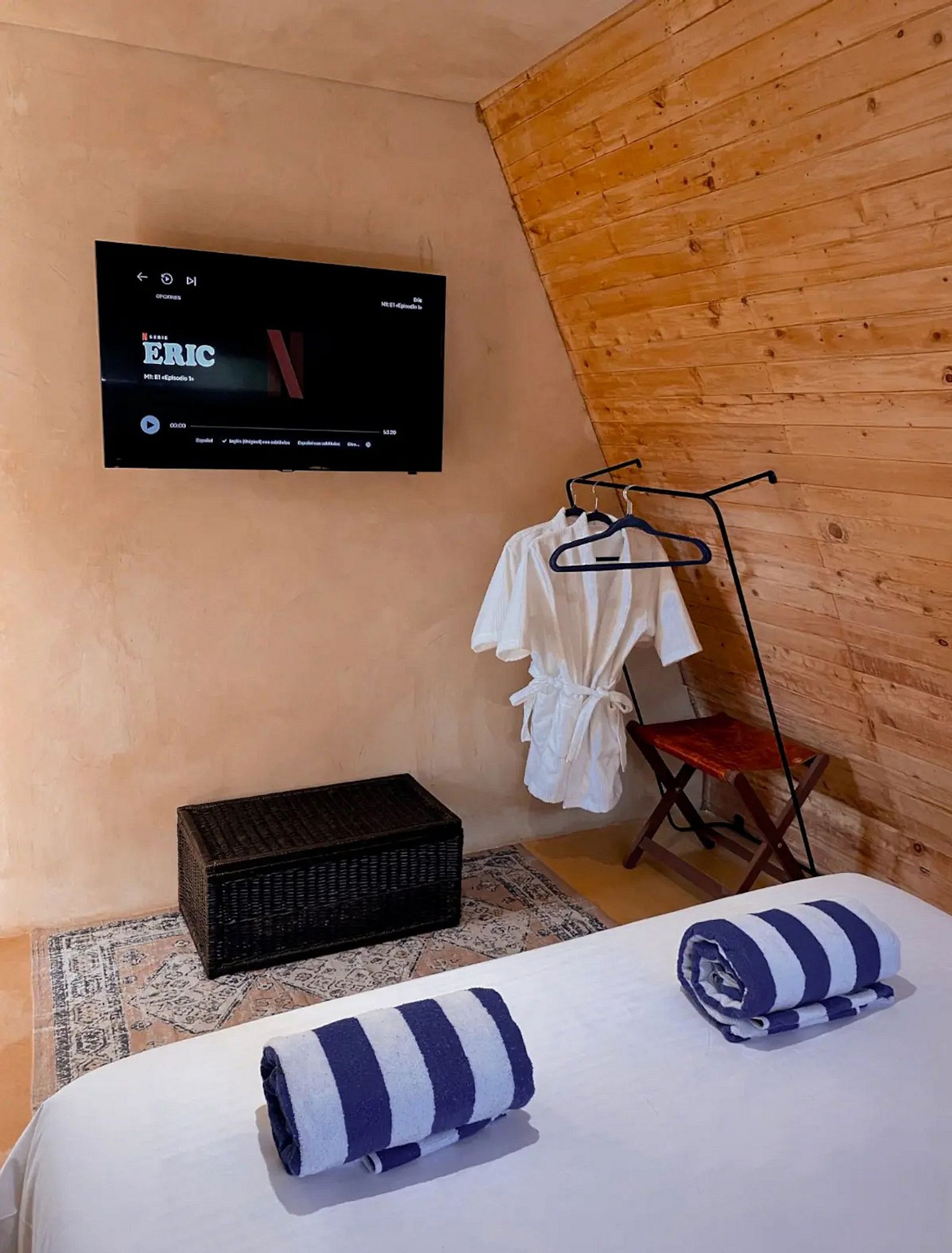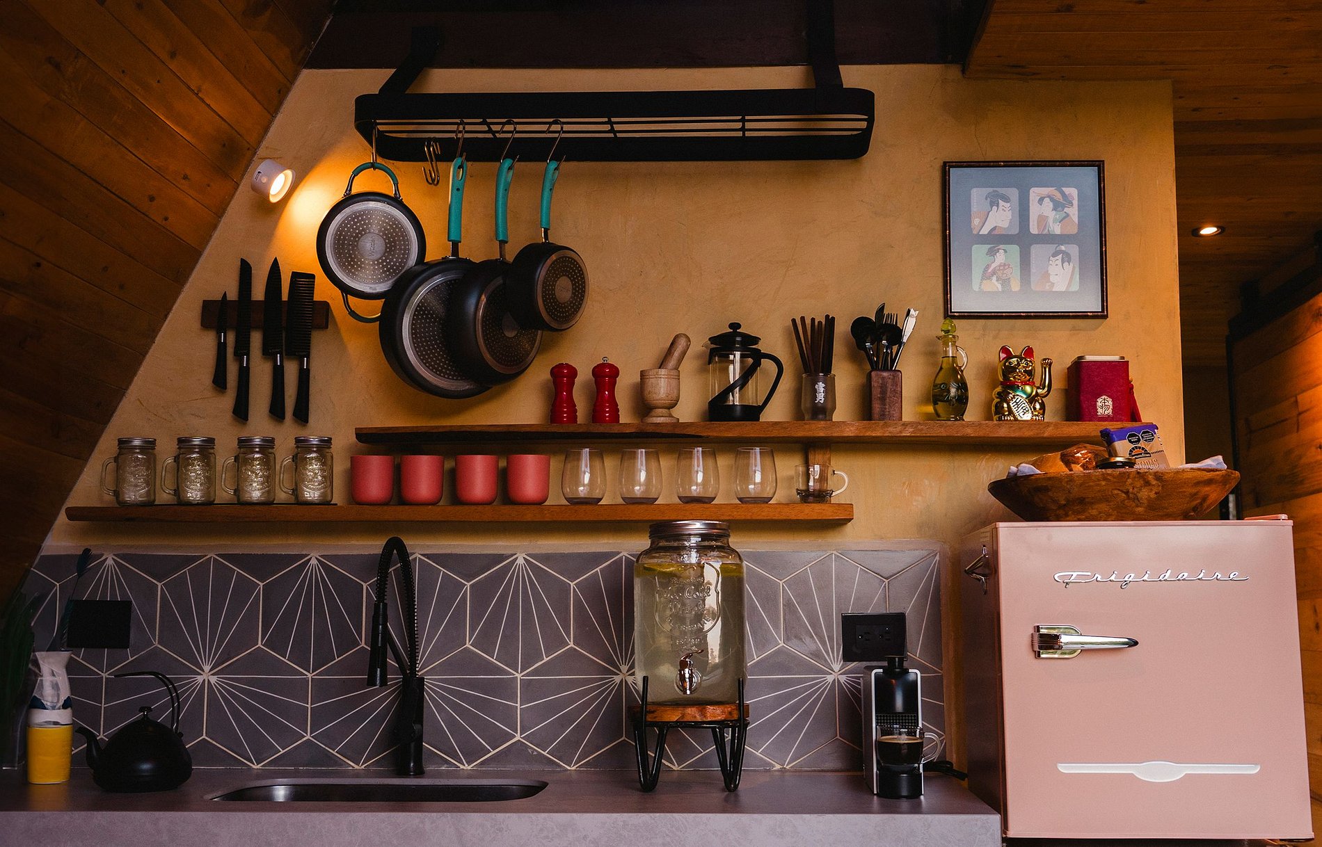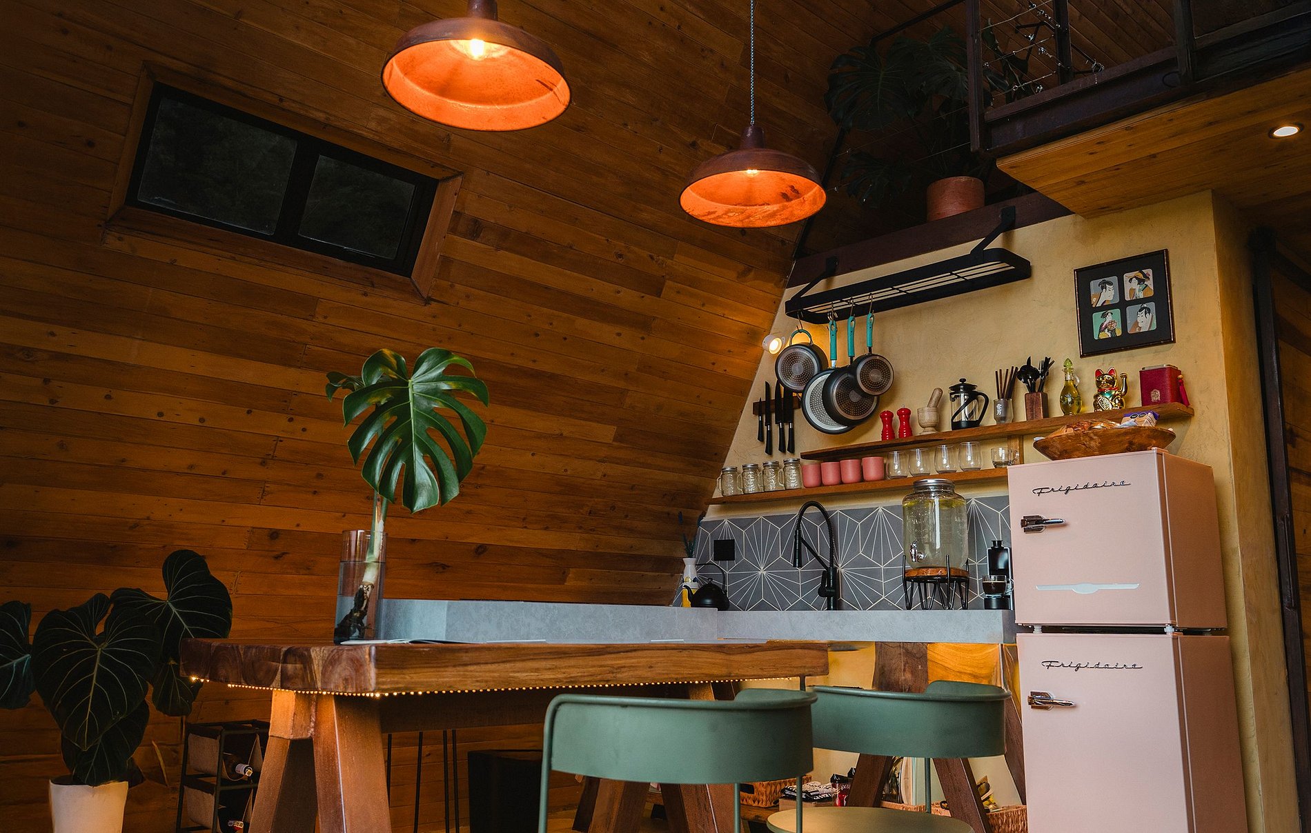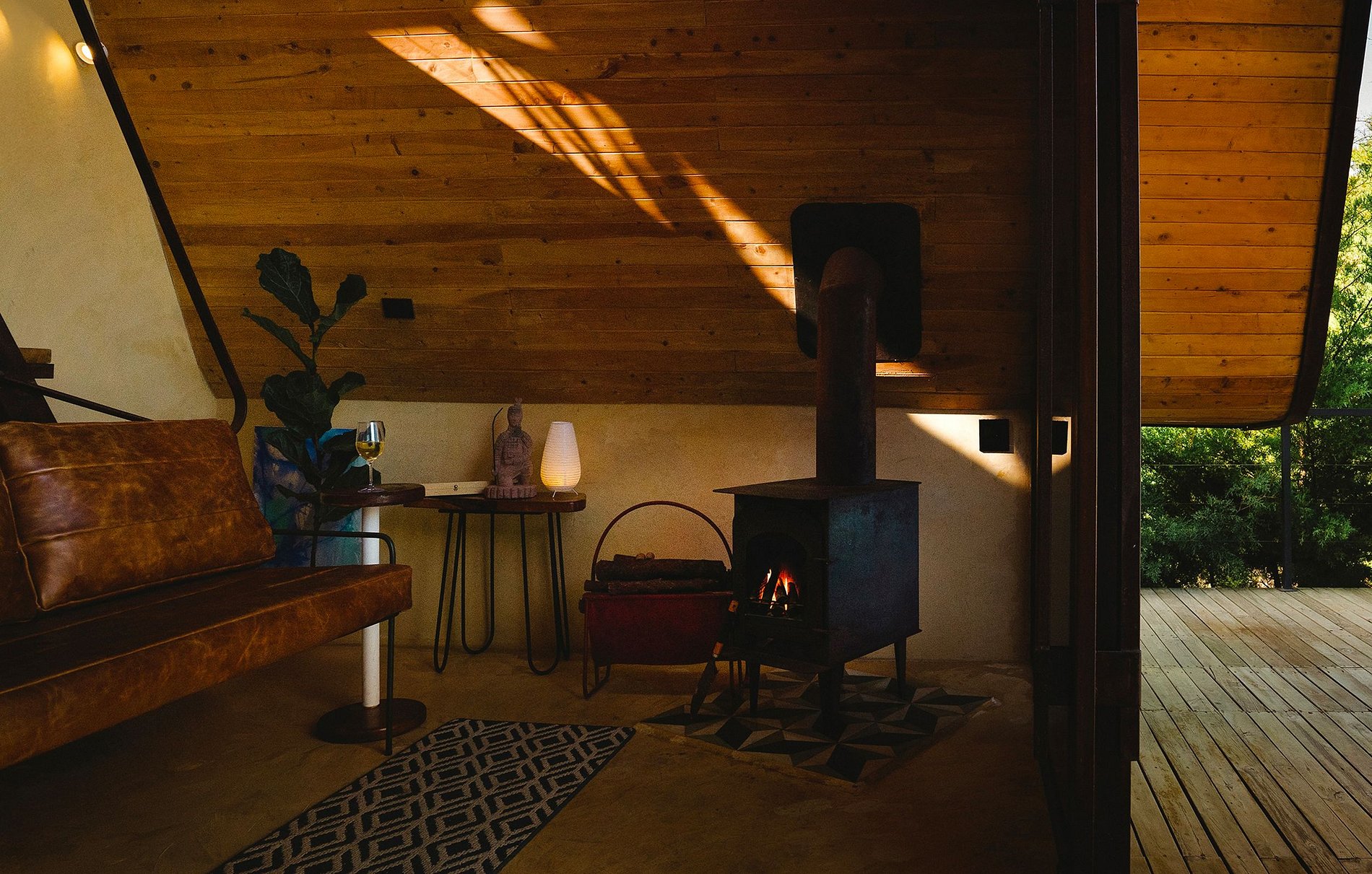 En el interior, encontrará un diseño orgánico, limpio y moderno que encarna el estilo Japandi, una mezcla armoniosa de la simplicidad japonesa y la funcionalidad escandinava. Con un techo de cristal que inunda el espacio de luz natural, puede observar las estrellas desde la comodidad de su sala de estar o acurrucarse frente a la chimenea de leña mientras juega al ajedrez.