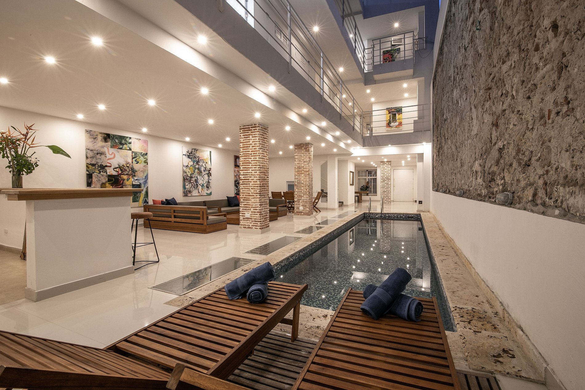 ¡Te encantarán las dos piscinas privadas, la mesa de ping pong y las vistas de la azotea en esta increíble casa! Ubicado en el hermoso vecindario de San Diego, estás en el mejor vecindario de la Ciudad Vieja. Estás a minutos de increíbles restaurantes y divertidas calles para caminar por la cultura de Cartagena. A cuadras de supermercados, a 10 minutos del aeropuerto ya 5 minutos de las playas.