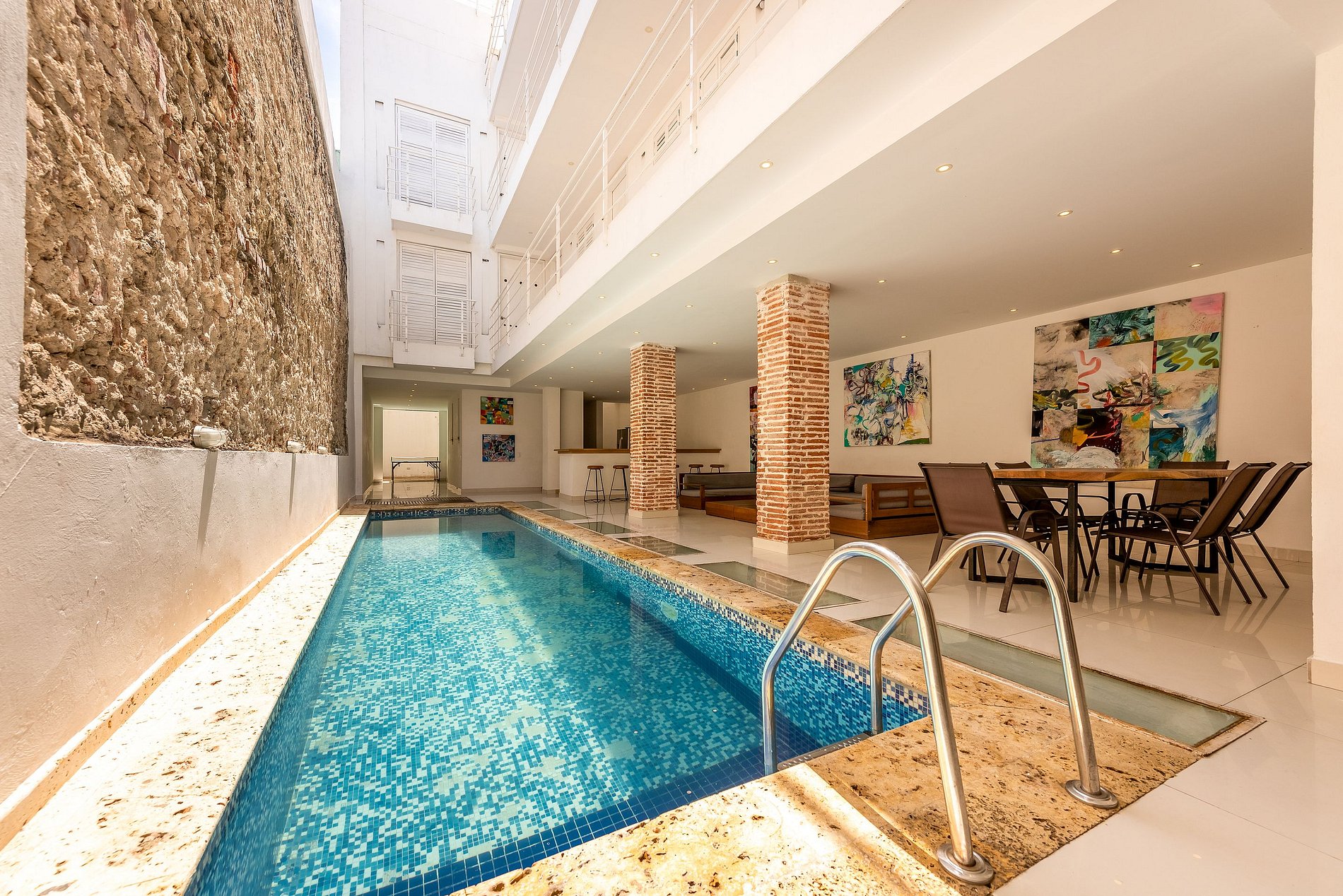 ¡Te encantarán las dos piscinas privadas, la mesa de ping pong y las vistas de la azotea en esta increíble casa! Ubicado en el hermoso vecindario de San Diego, estás en el mejor vecindario de la Ciudad Vieja. Estás a minutos de increíbles restaurantes y divertidas calles para caminar por la cultura de Cartagena. A cuadras de supermercados, a 10 minutos del aeropuerto ya 5 minutos de las playas.