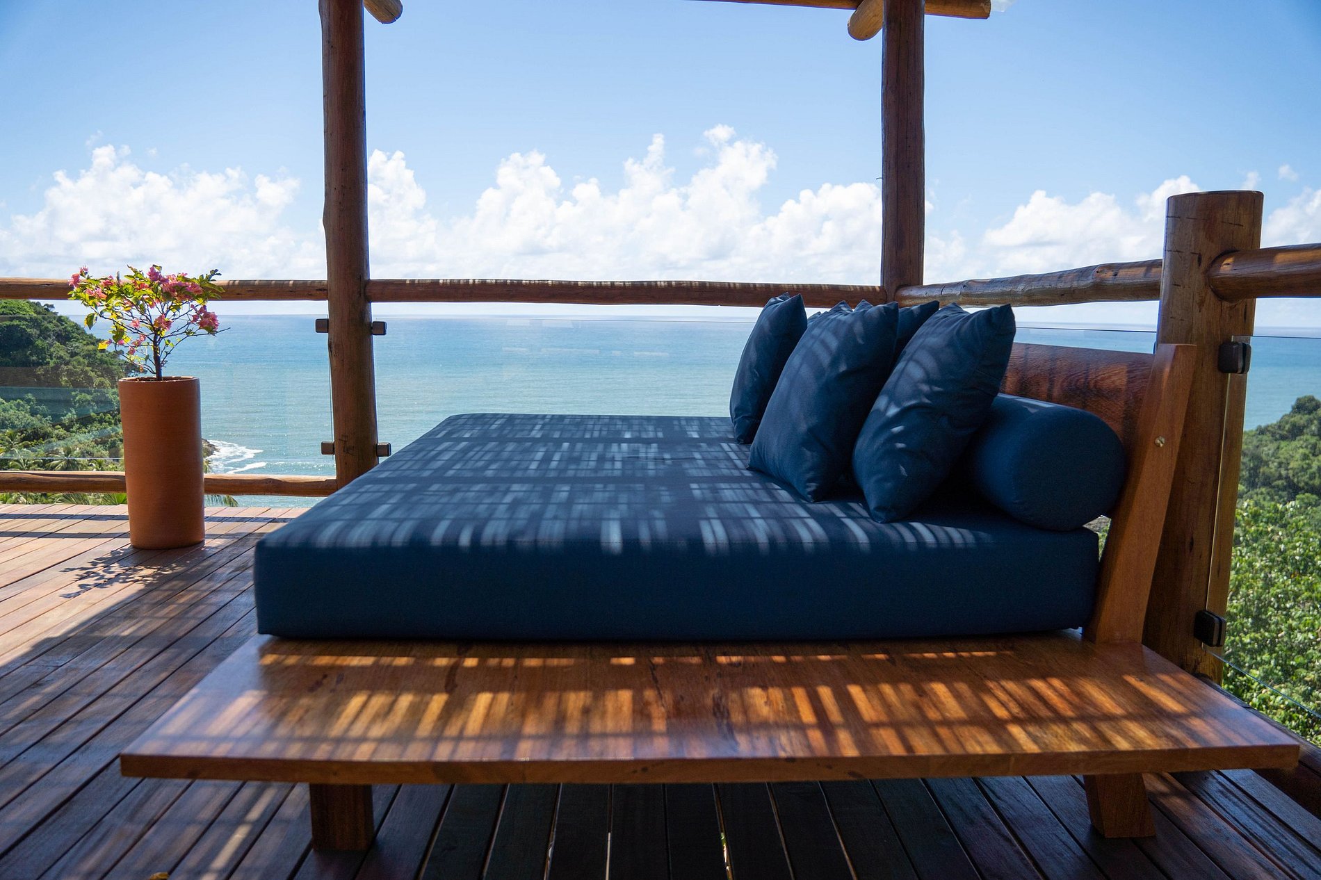 El porche de la casa dispone de un amplio espacio, ideal para celebraciones con amigos y familiares. Tiene una piscina con vistas al mar, para subir toda estima. Para el ocio y las comidas, la casa también dispone de barbacoa; y un espacio con sofás y sillones para descansar y disfrutar de la exuberancia natural del lugar.