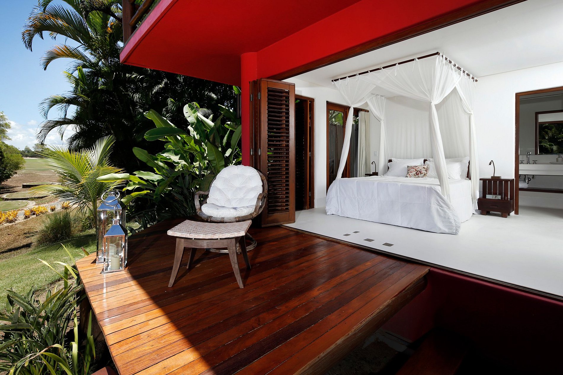 Suite 4: Planta baja, cama king, aire acondicionado, mosquitera, espejo de agua, balcón con acceso a la gastronomía, vista al campo de golf.