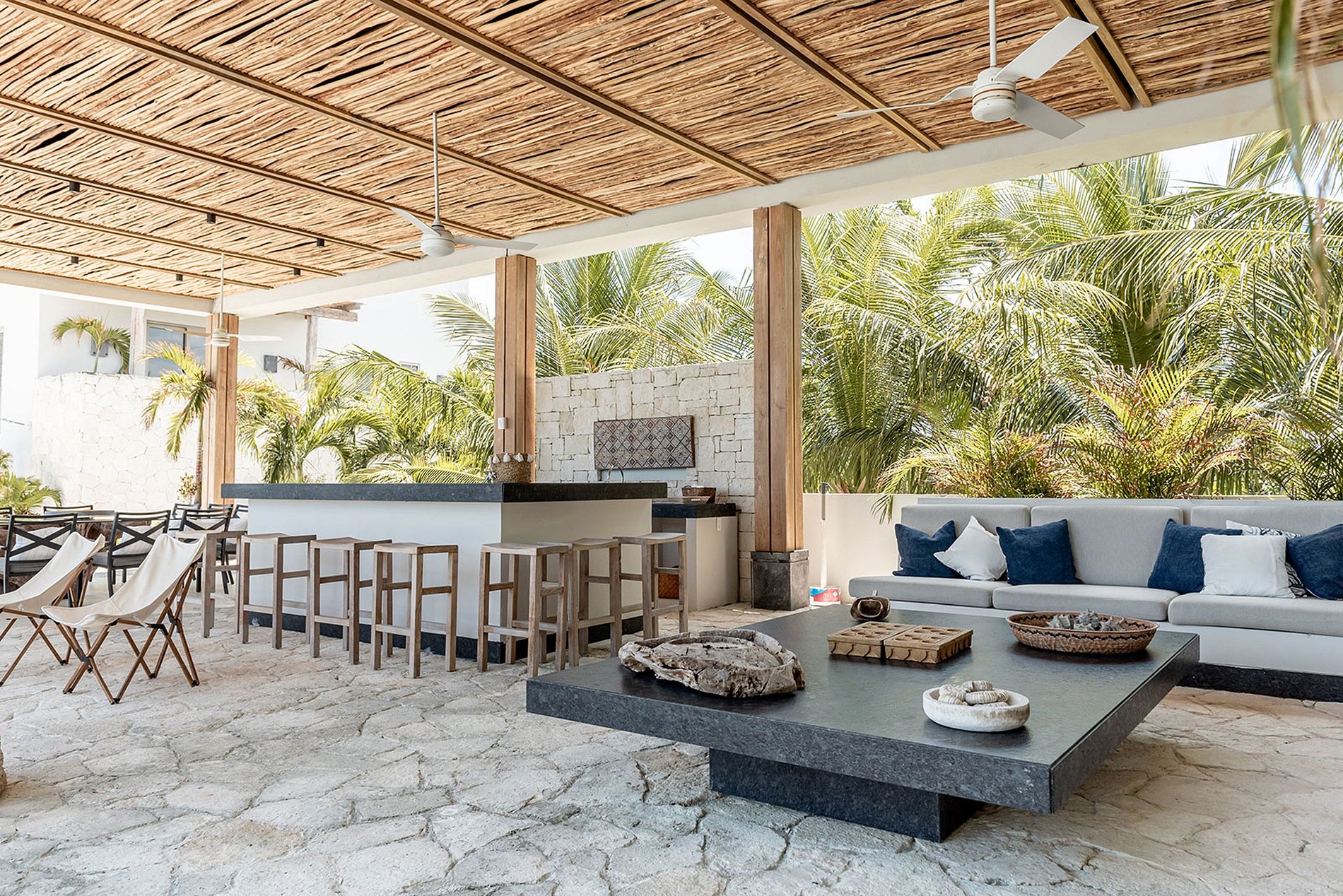 Deléitese con experiencias culinarias sensacionales en medio de escenarios pintorescos. Deléitese con una cena al aire libre bajo el techo de palapa a la sombra o saboree sus comidas en el dosel junto a la piscina. Un equipo dedicado de personal, que incluye chefs expertos, camareros atentos y un mayordomo, garantiza que se cumplan todos sus deseos. Además, un curador dedicado organizará meticulosamente cada detalle de acuerdo con su visión tropical, garantizando una estadía inolvidable.
