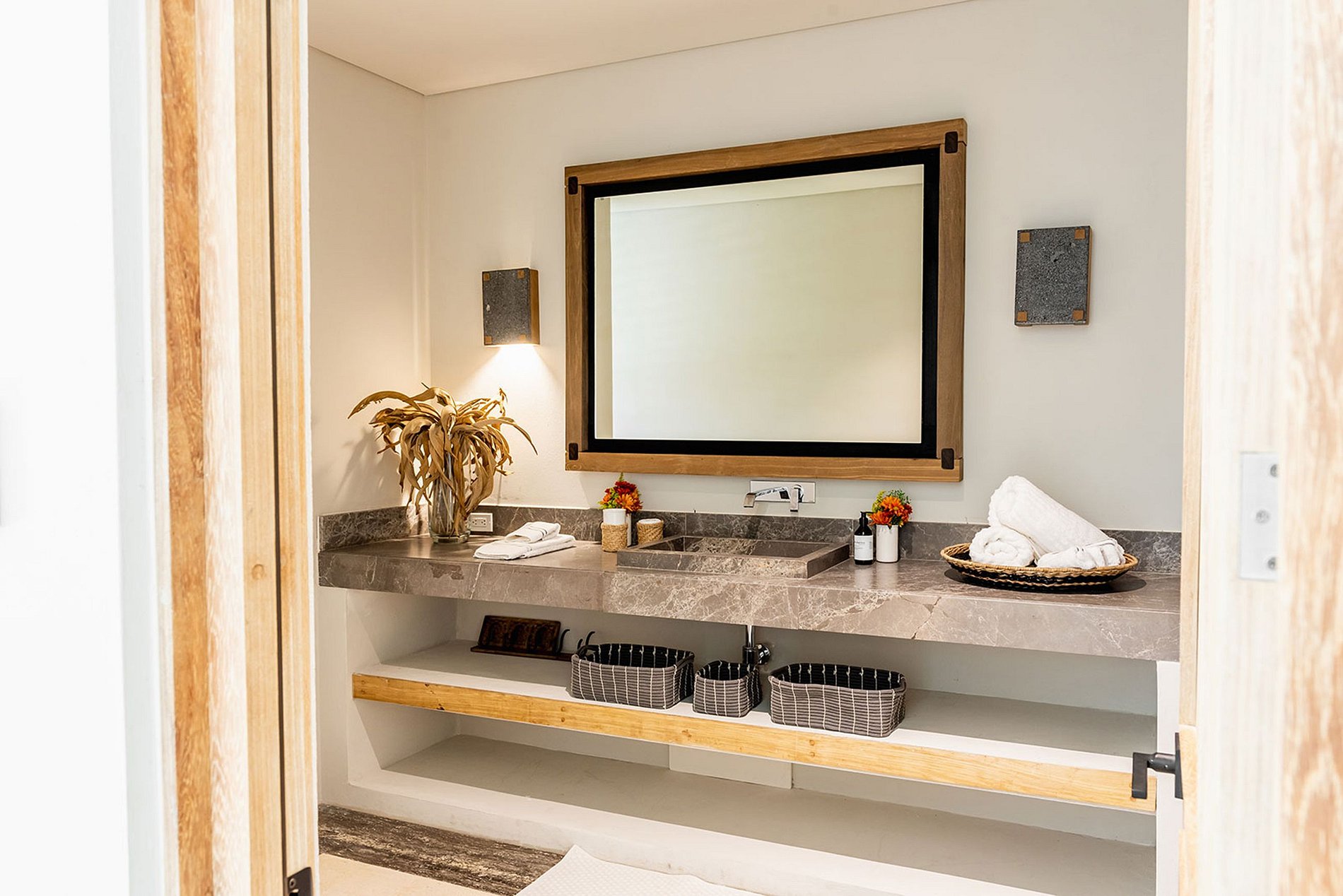 Ya sea que busque privacidad o grandeza, esta villa ofrece diversos alojamientos. Experimente el máximo lujo en nuestras habitaciones King, completas con balcones frente al mar, u opte por las habitaciones dobles más grandes que acomodan cómodamente hasta seis personas. Cada habitación encarna una estética minimalista al tiempo que proporciona prácticas camas adicionales. La casa principal cuenta con seis habitaciones, mientras que la séptima ofrece acceso privado a la playa y una octava habitación tipo bungalow completa el conjunto.