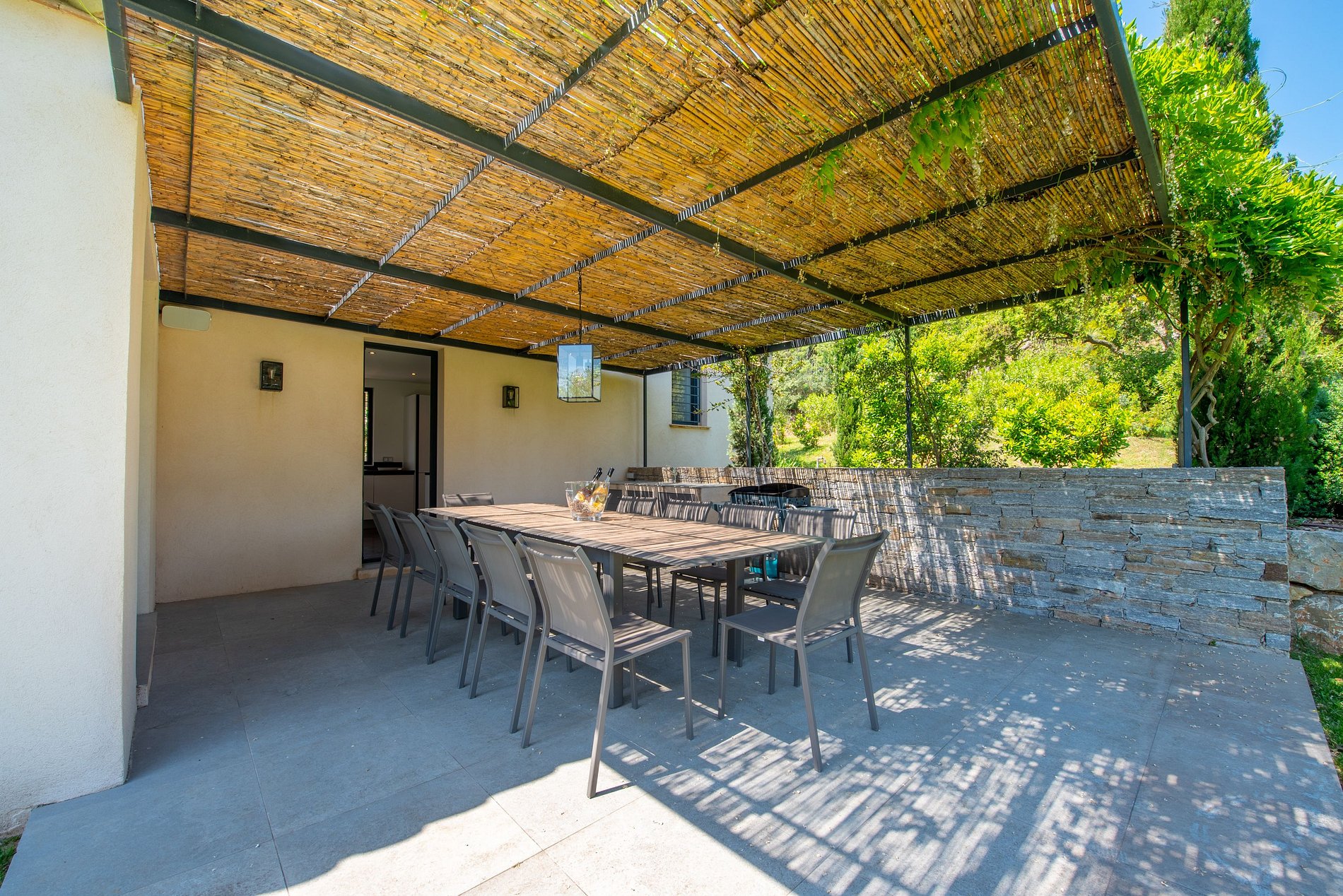 Outside, the house has an outdoor dining table and a barbecue for preparing delicious meats, a large infinity pool with a view of the region.