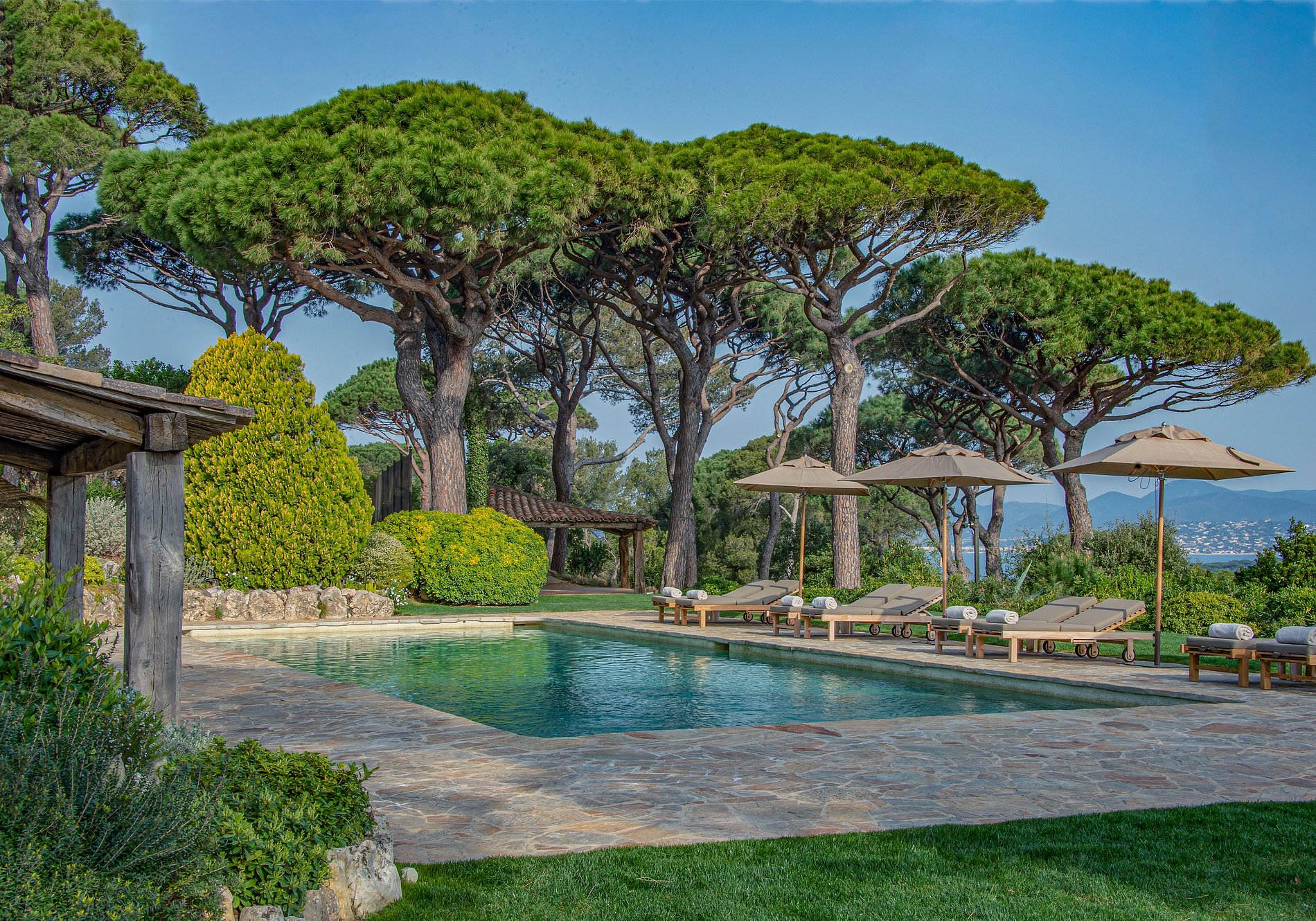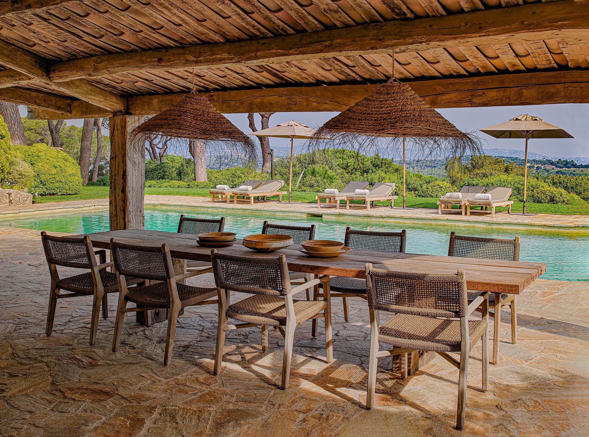 En el exterior, una gran mesa de comedor y una barbacoa invitan a cenas familiares o con amigos, en un ambiente tranquilo e íntimo. La piscina, de tamaño impresionante, es el lugar ideal para relajarse, refrescarse o disfrutar del sol mientras se contempla la vista panorámica, una de las más hermosas de Saint-Tropez.