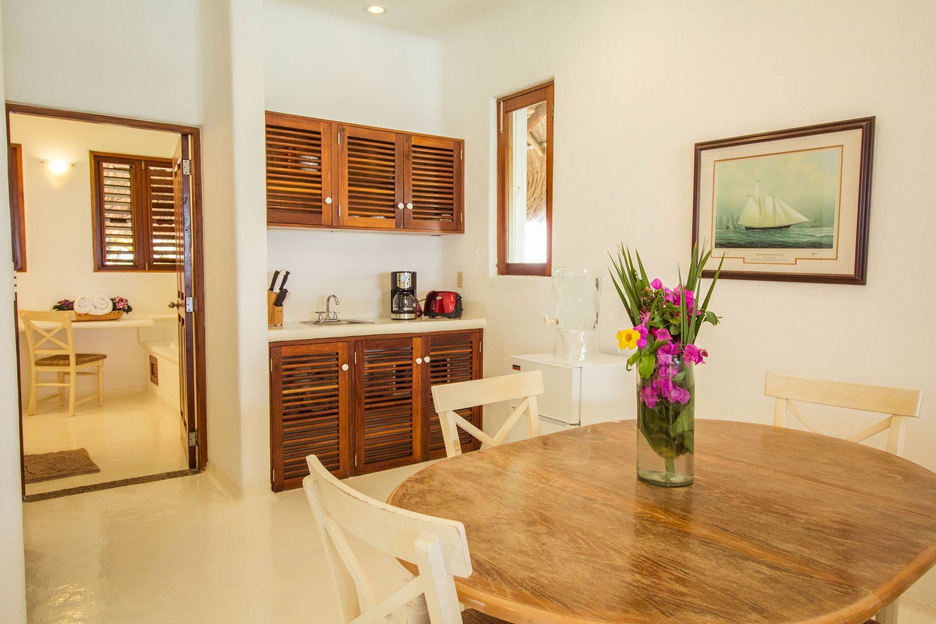 Cada habitación de la villa cuenta con magníficas vistas del Mar Caribe. Las vistas del atardecer y el santuario de aves de la laguna de la jungla son igualmente impresionantes. Salga de los espacios interiores de estar y comedor a la terraza de la piscina, donde los muebles de ratán acolchados lo invitan a relajarse y empaparse del ambiente tropical.