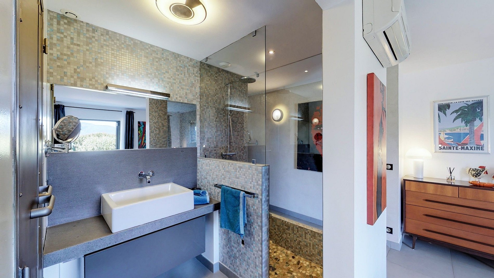 A casa está a poucos minutos do centro da cidade, praias paradisíacas e diversas paisagens de tirar o fôlego, para os amantes da história local, a casa está a cerca de 20 minutos de carro da icônica Saint Tropez com seus belos museus e sua arquitetura clássica.
