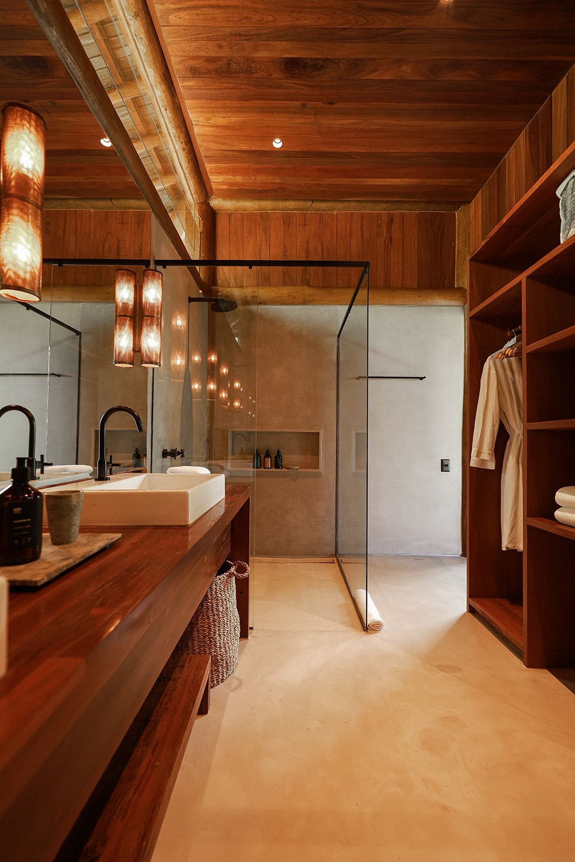 En total, son 4 suites interconectadas por decks, una piscina infinita y un bungalow central con cocina, balcón y mesa para almorzar bajo una pérgola.