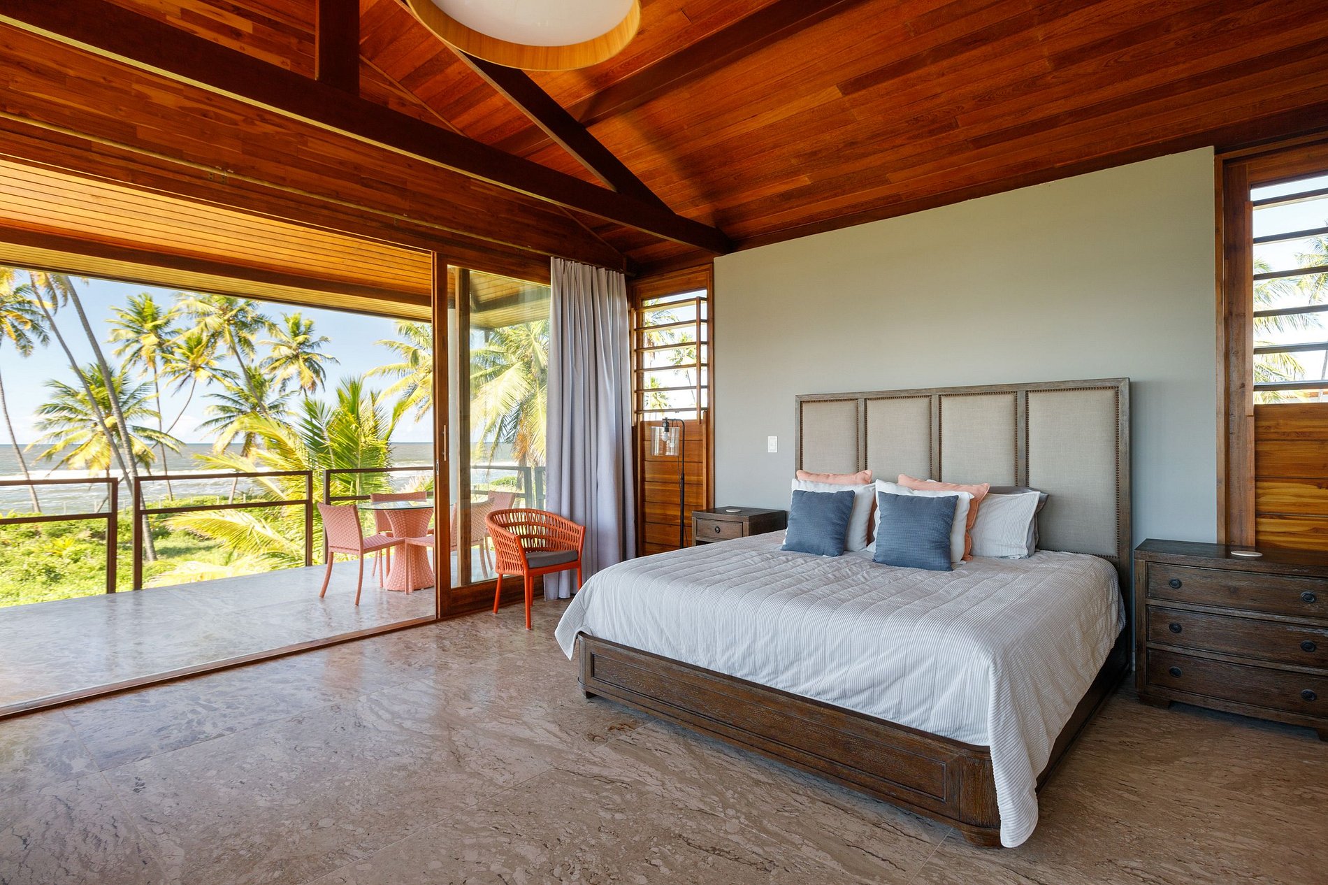 En el segundo piso hay 3 encantadoras suites, todas ellas climatizadas, con baño privado y ofreciendo el máximo confort a todos. La primera suite es una suite principal, tiene una cama super king size y un sofá cama doble y un balcón con vista al mar. La segunda suite tiene 2 camas tamaño queen y tiene vista al mar. Su última suite está equipada con una cama king size y tiene un balcón con vista al mar.