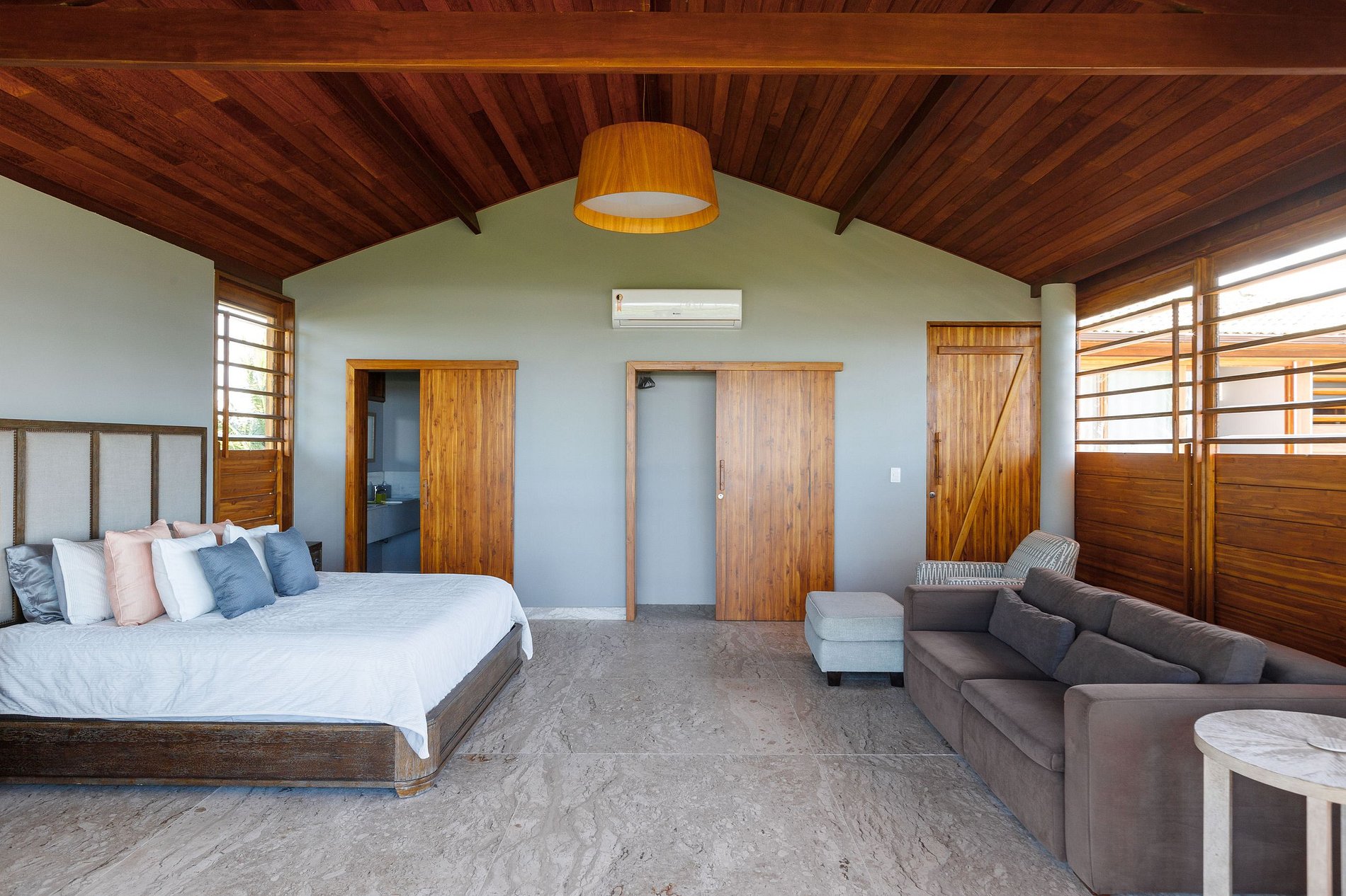 Su primera suite está en el primer piso de la villa, tiene un amplio espacio con aire acondicionado y está equipada con una cama king size con un sofá cama para niños y baño privado.