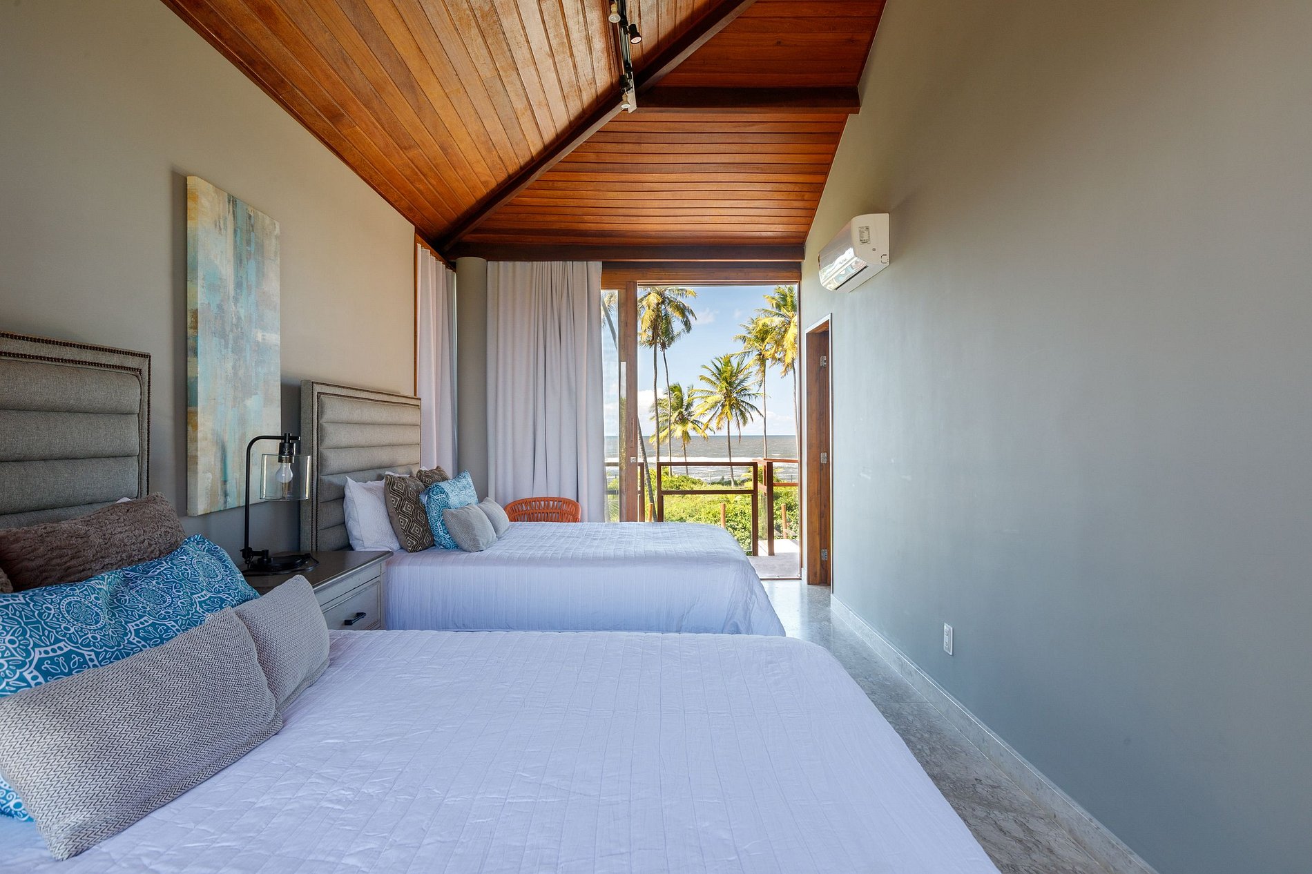 En el segundo piso hay 3 encantadoras suites, todas ellas climatizadas, con baño privado y ofreciendo el máximo confort a todos. La primera suite es una suite principal, tiene una cama super king size y un sofá cama doble y un balcón con vista al mar. La segunda suite tiene 2 camas tamaño queen y tiene vista al mar. Su última suite está equipada con una cama king size y tiene un balcón con vista al mar.