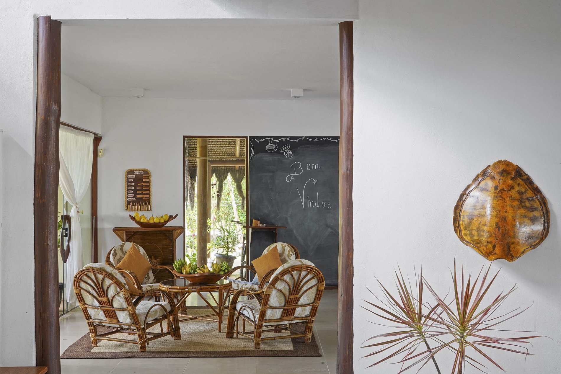 La villa está construida en armonía con el jardín natural. Muchos cocoteros y árboles frutales. Se encuentra frente al mar, en una playa salvaje y cerca de Serra Grande.