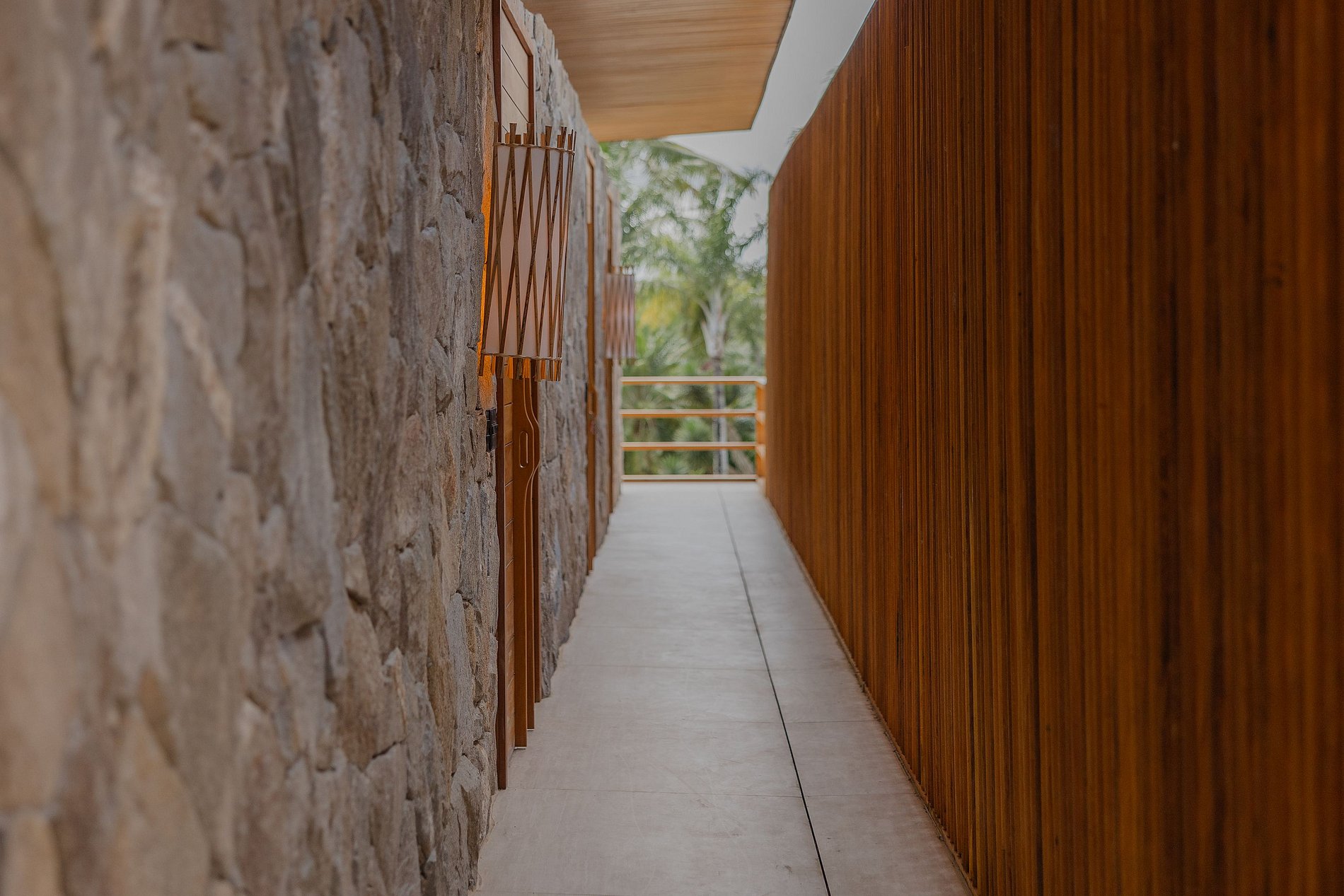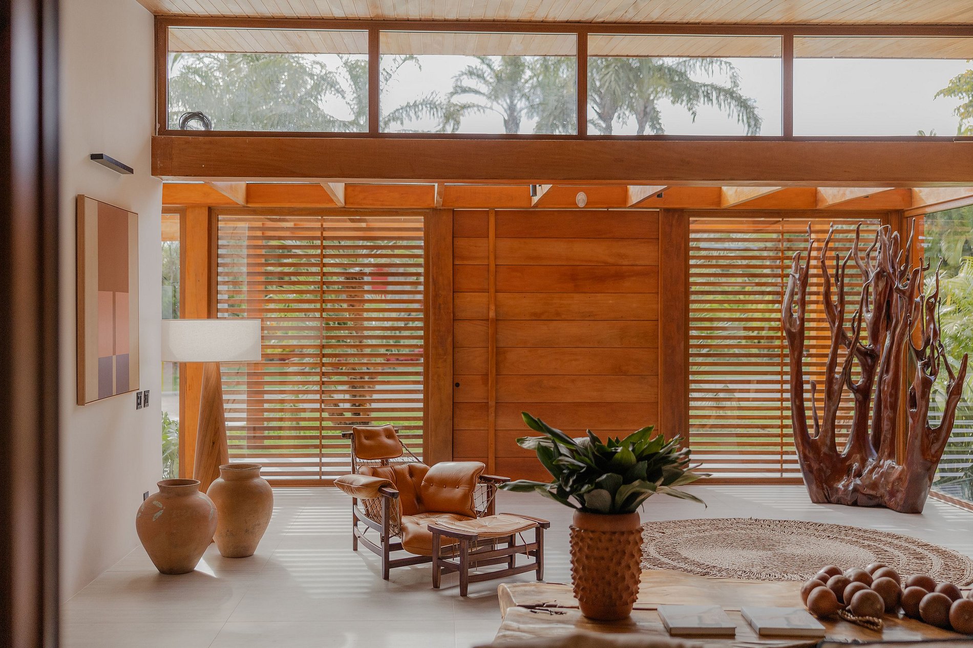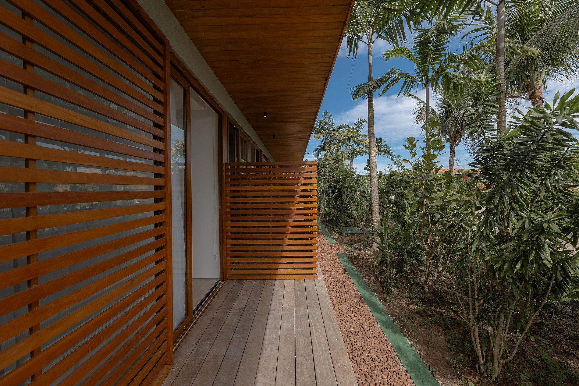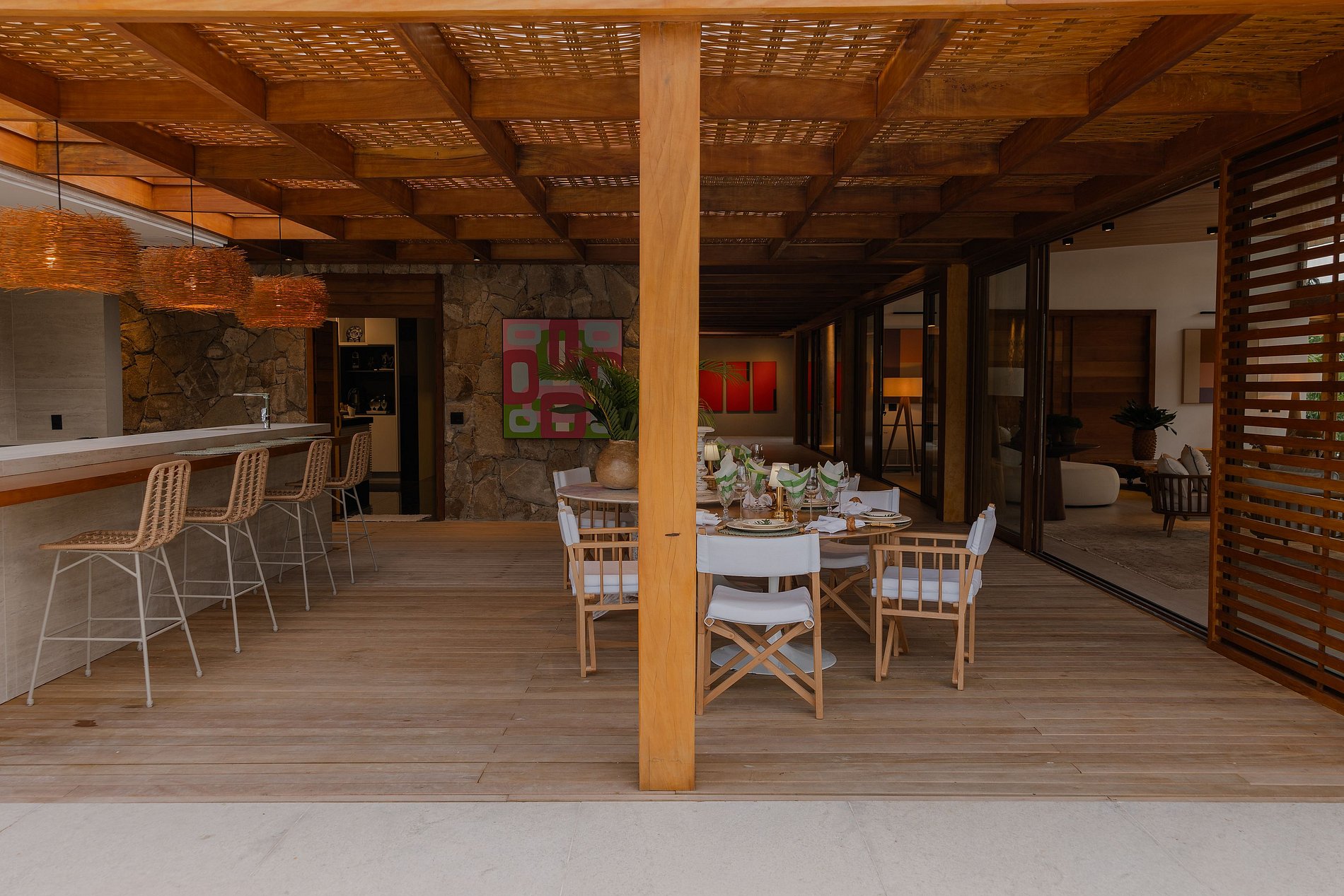 La residencia tiene un frente de 30 m3 y un lado de 40 m, totalizando 70 m, y se distribuye en 2 plantas, con cochera techada para 2 autos, hall de entrada, sala, cine en casa, comedor, amplia cocina, lavandería. , 10 baños (incluidos los de las suites). El Área Externa consta de una cocina gourmet,